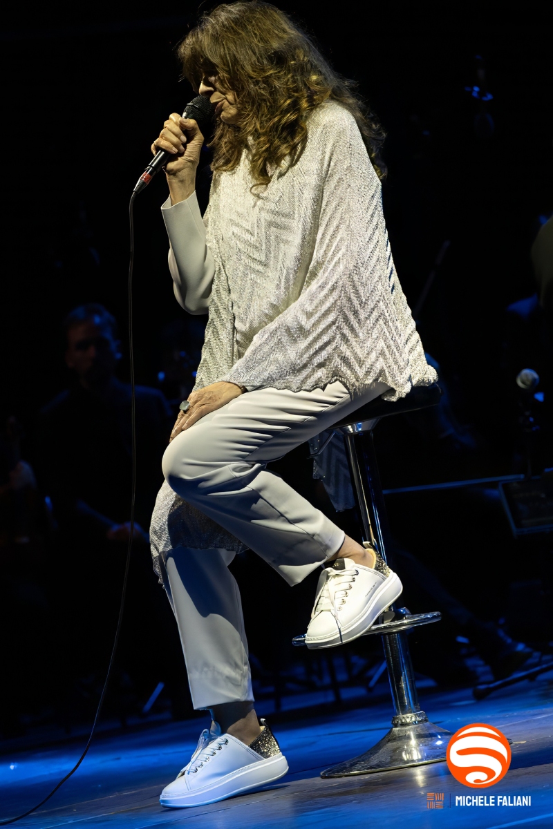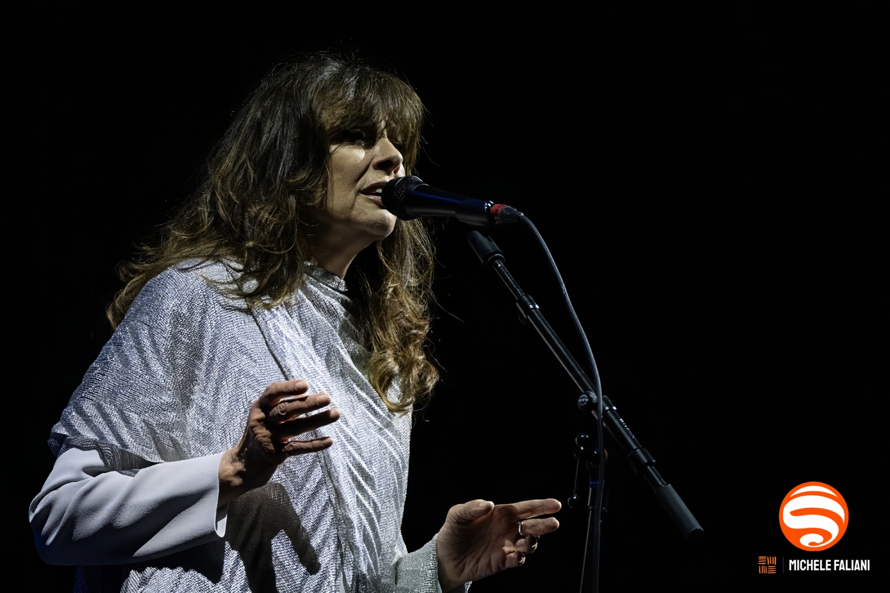 Momento clou della serata è La cura: Alice la interpreta con delicatezza quasi eterea, trasformandola in una preghiera laica, un inno all’amore e alla consapevolezza. Il pubblico ascolta in religioso silenzio, poi esplode in un applauso travolgente.