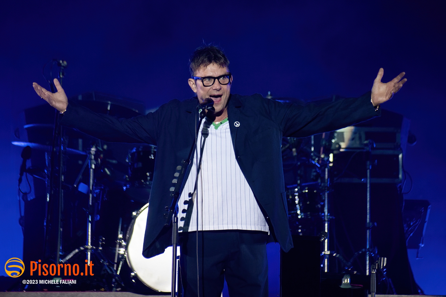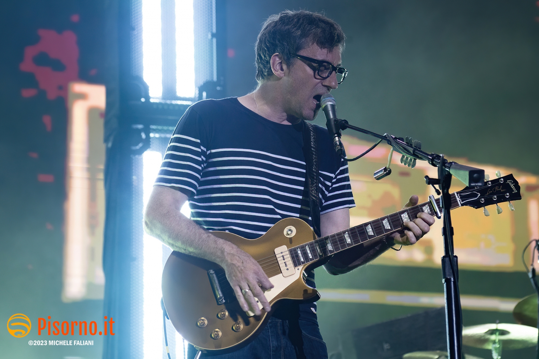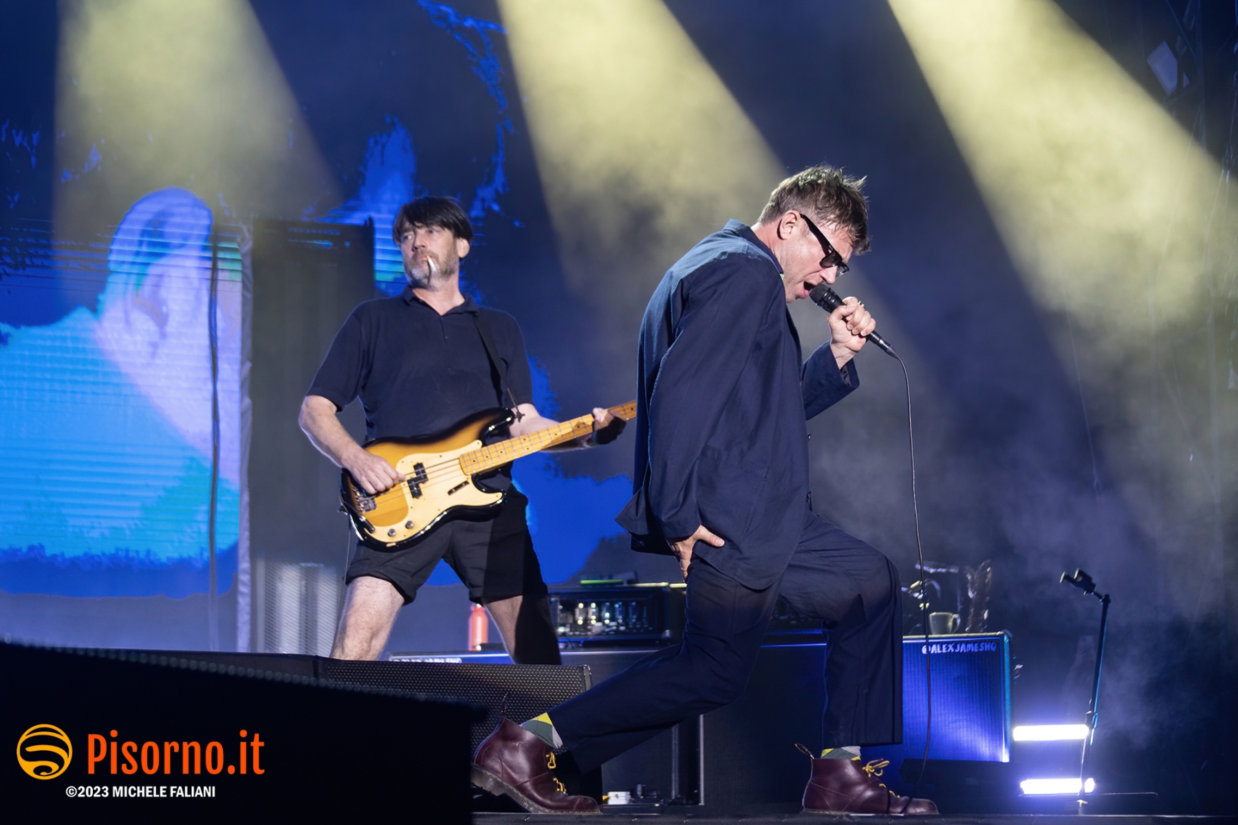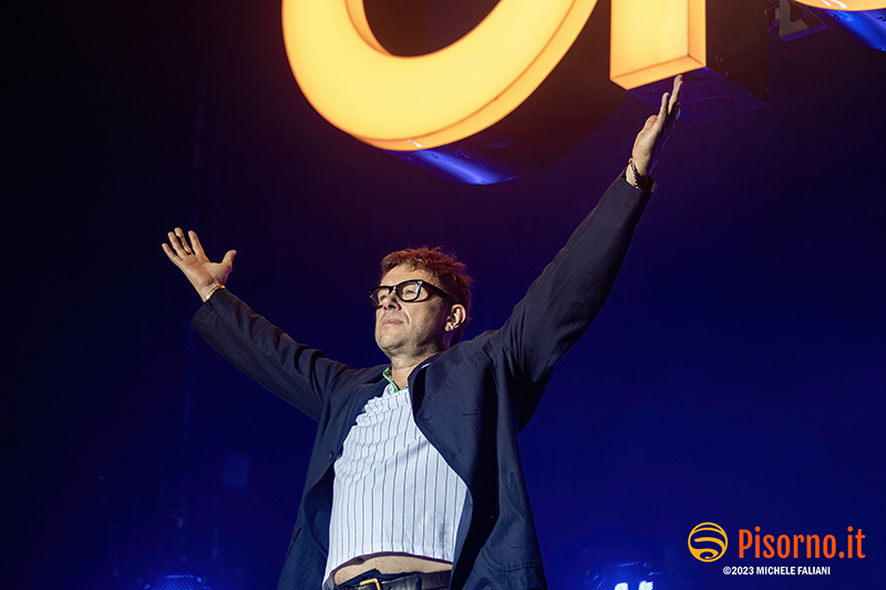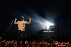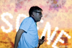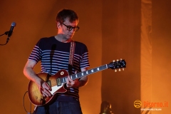 Riecco Damon Albarn e soci, 10 anni dopo l’ultima volta in Italia, 24 ore dopo aver rilasciato sul mercato il loro 9° album in studio, suonare davanti a oltre 45000 persone per 90 minuti precisi una setlist di 23 canzoni, bis compresi. I freddi numeri della serata sono questi, ma fortunatamente nella serata perfetta dei Blur c’è tanto di più: sotto le mura storiche di Lucca (organizzata alla perfezione per ricevere la marea di appassionati che hanno riempito il prato vicino alla porta San Pietro), su un palco enorme e con una scenografia imponente, si sono presentati al pubblico sulle note di “The debt collector”, dimostrandosi subito carichi, sorridenti e vogliosi di divertirsi e far divertire. Alex James, il bassista, suona con la sigaretta in bocca e con la stessa tranquillità con cui (crediamo) produca il formaggio nella sua fattoria, Damon Albarn riesce a tenersi la giacca solo per il primo pezzo, poi se la toglie e inizia a saltare come un pazzo su e giù lungo la passarella che si infila fra i fans in delirio. Graham Coxon pennella riff con la sua Les Paul, e Dave Rowntree picchia sui tamburi con precisione. E poi ci sono le (tante) belle canzoni che i Blur ci hanno regalato in questi anni, da Song 2, che ha accompagnato a lungo i malati di Fifa 98, a Coffee & TV, che ci fece innamorare del cartone del latte protagonista del videoclip di tanti anni fa; c’è il ritmo esaltante di Country house, c’è la magia di Tender con tutto il pubblico a cantare “Oh my baby, Oh my baby” e c’è pure il nostro pezzo preferito di “The ballad of Darren” (ma quanto sarà bella The narcissist?) e perfino qualche perla nascosta come Tracy Jacks e Villa Rosie, che esaltano soprattutto chi conosce bene i Blur e chi li segue dall’inizio. Insomma, il tempo sembra non essersi mai fermato per Albarn e soci, rimangono i soliti ragazzi dall’aria strafottente che sono sempre stati ma con in più una maturità artistica invidiabile. Speriamo di non dover aspettare altri 10 anni prima di rivederli da queste parti.