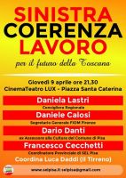 8aprile 2015 da Sel Pisa Giovedì prossimo 9 aprile al Teatro Lux di Pisa, ore 21,30, per parlare del futuro della Toscana a partire da tre parole chiave come... Read more »