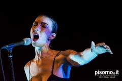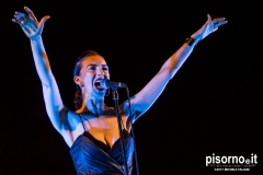 E’ la musa del regista cult David Lynch, e questo inevitabilmente le crea intorno una grande curiosità; è nel cast della nuova serie di Twin Peaks, nel ruolo dell’agente FBI Tamara Preston, e quindi la curiosità aumenta; è una donna bellissima, tanto che Lynch l’ha definita “un’aliena, l’aliena più bella del mondo”. Ma quello che conta di più è Chrysta Bell è anche un’ottima cantautrice, il cui primo album (indovinate chi ne è il produttore) “This train” è stato per mesi nel mio lettore cd e nel mio iPod. E che la Bell sia soprattutto una grande cantautrice mi è stato confermato dal grandioso concerto dell’altra sera alla Rocca di Carmignano, che non avevo mai visto così gremita prima. Un totale di 15 canzoni, bis compreso, per un’ora e mezza circa, che è da annoverare tra i più belli di sempre. Una scaletta equamente divisa fra l’album d’esordio, il nuovissimo “We dissolve”, un paio di estratti dall’Ep (ancora una volta con David Lynch) che sta in mezzo, e perfino la sorpresa di un inedito (la sensualissima “Undertow”) che ancora non è stato registrato. E la Musa che canta perfettamente, che si trova perfettamente a suo agio sia nelle atmosfere dilatate dell’iniziale “Polish poem”, per esempio, che sui ritmi più sostenuti di “Heaven” o di “Gravity”. Davvero un concerto sensazionale, da non perdere quando ricapiterà da queste parti.