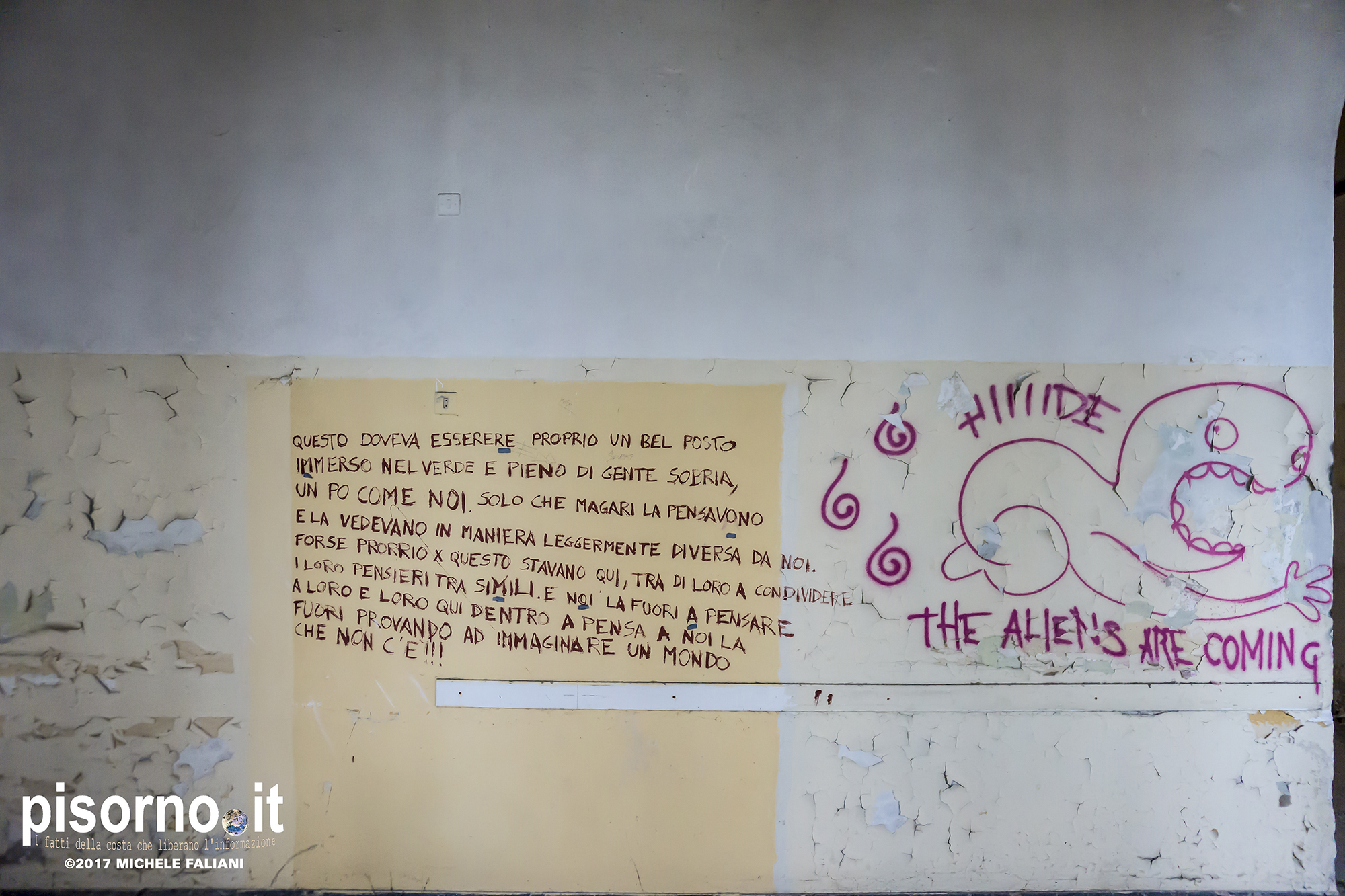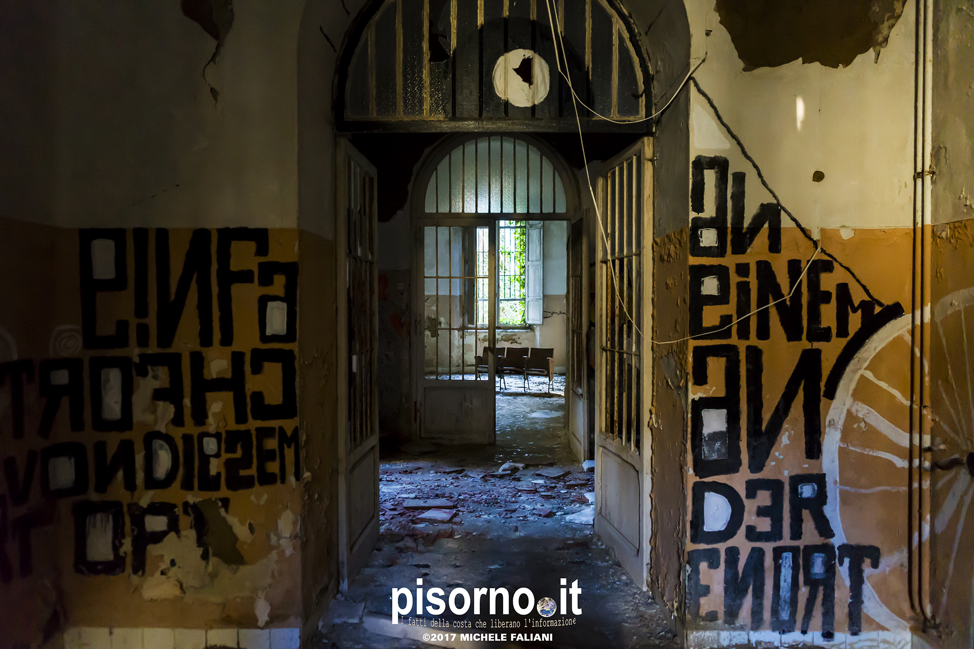 Il primo ‘luogo dell’abbandono’ in Toscana è l’Ex Manicomio di Volterra, abbandonato nel 1978 dopo che la legge Basaglia chiuse gli ospedali psichiatrici. C’è da firmare una liberatoria che solleva gli organizzatori e il Comune da qualsiasi tipo di responsabilità nel caso che qualche visitatore si spinga un po’ troppo oltre il limite dettato dal buonsenso, e c’è da pagare un’ingresso di 15€ che permette all’associazione di vivere e di continuare a ottenere i permessi di ingresso alle strutture. La somma spesa è ampiamente ripagata dalla sola vista dei graffiti di Oreste Fernando Nannetti, noto con lo pseudonimo NOF4, ospite dell’ospedale dal 1958 al 1973. Nannetti incise sull’intonaco del muro esterno del padiglione della sezione giudiziaria, utilizzando le fibbie delle cinture che facevano parte delle divise degli internati, una serie di graffiti che occupavano uno spazio enorme: 2 metri di altezza per 180 metri lineari. I vandali e le intemperie ne hanno distrutto gran parte, ma circa 20 metri sono ancora visibili e tolgono il fiato, se solo si pensa il contesto e il modo col quale sono stati creati. E anche il resto dei padiglioni, in tutto 4, sebbene devastati dai soliti vandali e dal passare del tempo, lasciano un senso di inquietudine e di vuoto spettrale che fanno solo immaginare il dolore e la solitudine che vivevano fra quelle mura. Si può visitare anche il piccolo cimitero che ospita tutti gli internati morti durante la loro permanenza nell’ospedale e anche un museo che conserva divise, camicie di forza, macchinari, perfino le lettere che gli internati scrivevano alle famiglie e che non venivano mai consegnate. Una visita è consigliatissima soprattutto per fare in modo che tutte le persone che lì dentro hanno sofferto in maniera indicibile vengano ricordate anche anni dopo la fine del loro incubo.