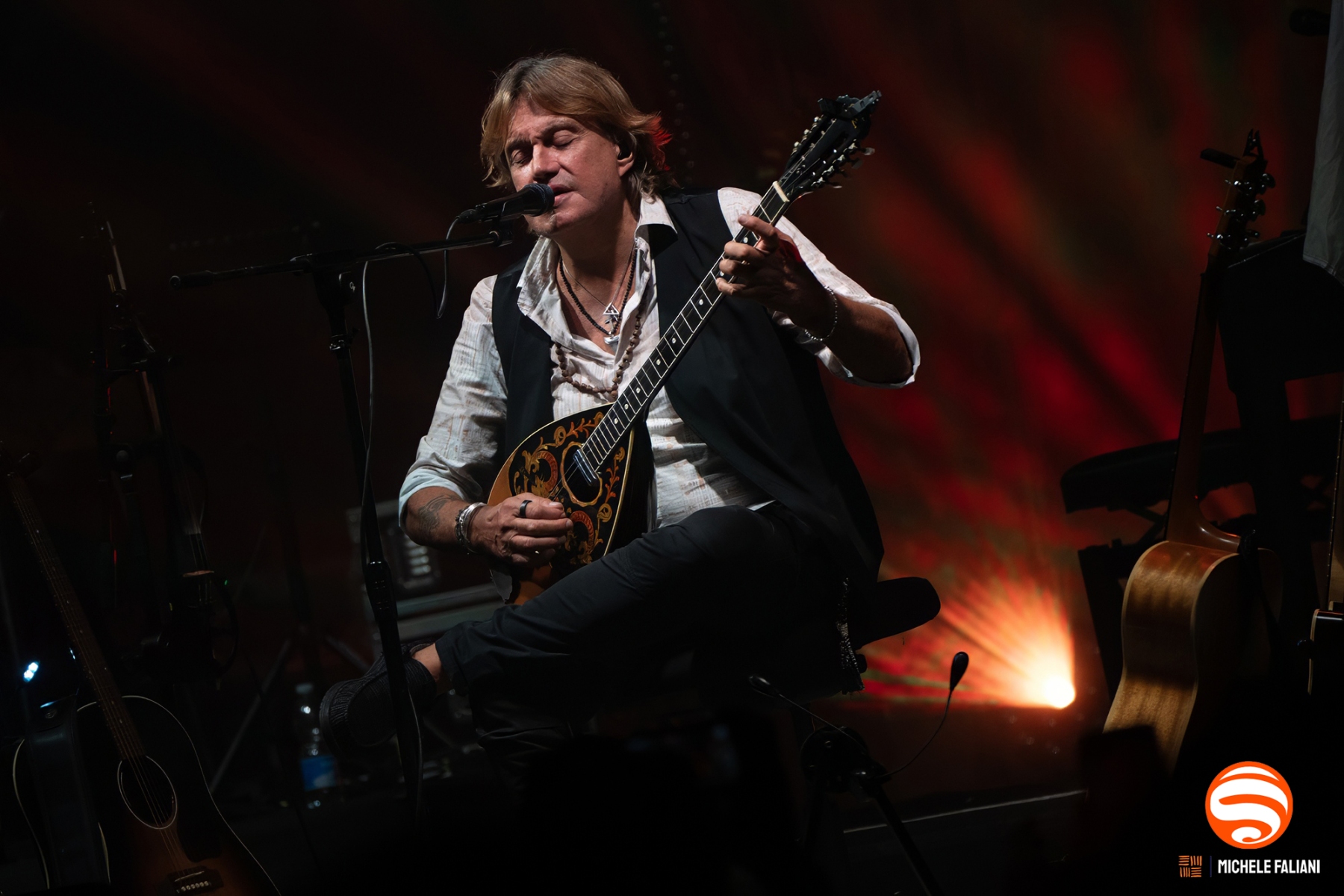 Cristiano ha prestato la sua voce intensa e ruvida a capolavori che non smettono di parlare al cuore e alla coscienza. Dai brani in dialetto genovese come “Megu Megún” e “’A çimma”, fino a classici come “Don Raffaè”, “Se ti tagliassero a pezzetti” o le canzoni di Storia di un impiegato, il concerto ha alternato momenti di energia trascinante a passaggi più intimi, sostenuti dal violino e dal bouzouki, strumenti che Cristiano padroneggia con naturalezza e che amplificano la dimensione emotiva del racconto musicale.