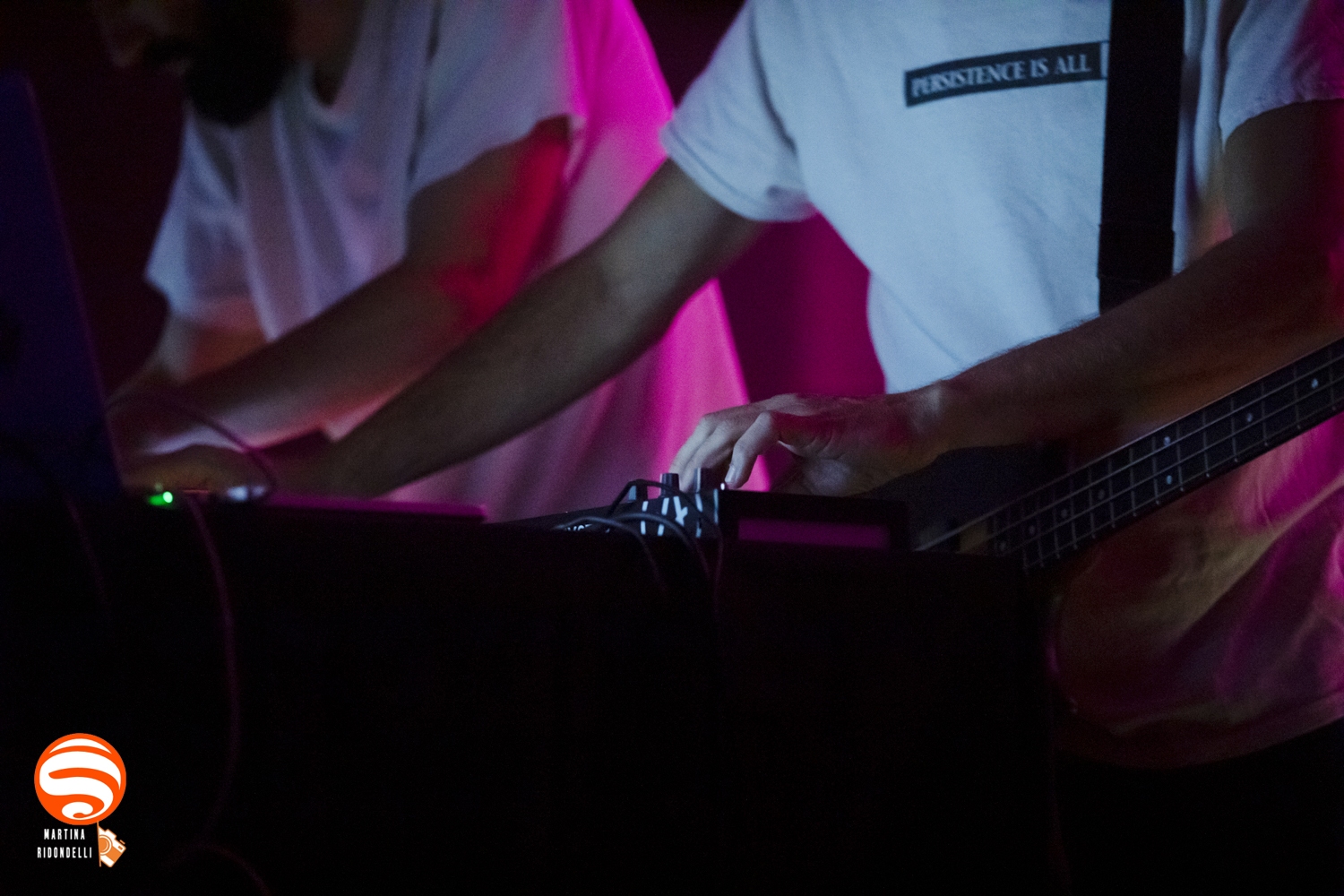 Il concerto si è aperto con suoni densi, quasi impercettibili, che evocavano il buio e il silenzio della camera più interna di una grotta. Le ritmiche elettroacustiche, liquide e pulsanti, hanno subito costruito un paesaggio sonoro che sembrava respirare. Sopra di esse, il basso di Pupillo ha inciso la materia acustica come uno strumento di scavo: linee ruvide, graffiature, vibrazioni capaci di trasformare lo spazio stesso del museo in un ventre cavo e vivo.