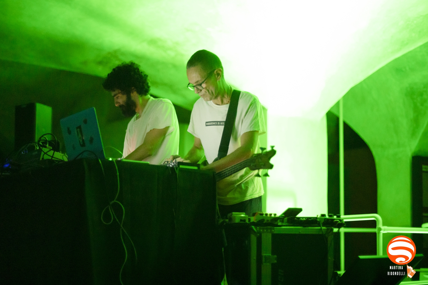 Il concerto si è aperto con suoni densi, quasi impercettibili, che evocavano il buio e il silenzio della camera più interna di una grotta. Le ritmiche elettroacustiche, liquide e pulsanti, hanno subito costruito un paesaggio sonoro che sembrava respirare. Sopra di esse, il basso di Pupillo ha inciso la materia acustica come uno strumento di scavo: linee ruvide, graffiature, vibrazioni capaci di trasformare lo spazio stesso del museo in un ventre cavo e vivo.