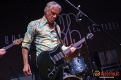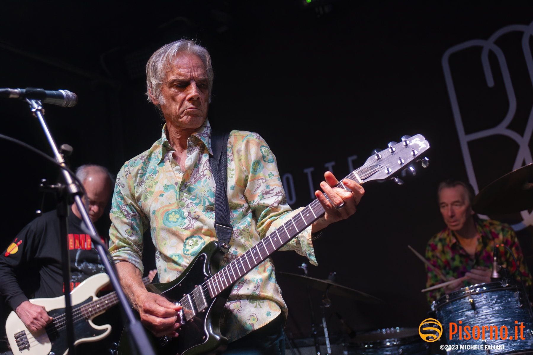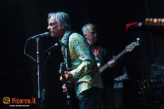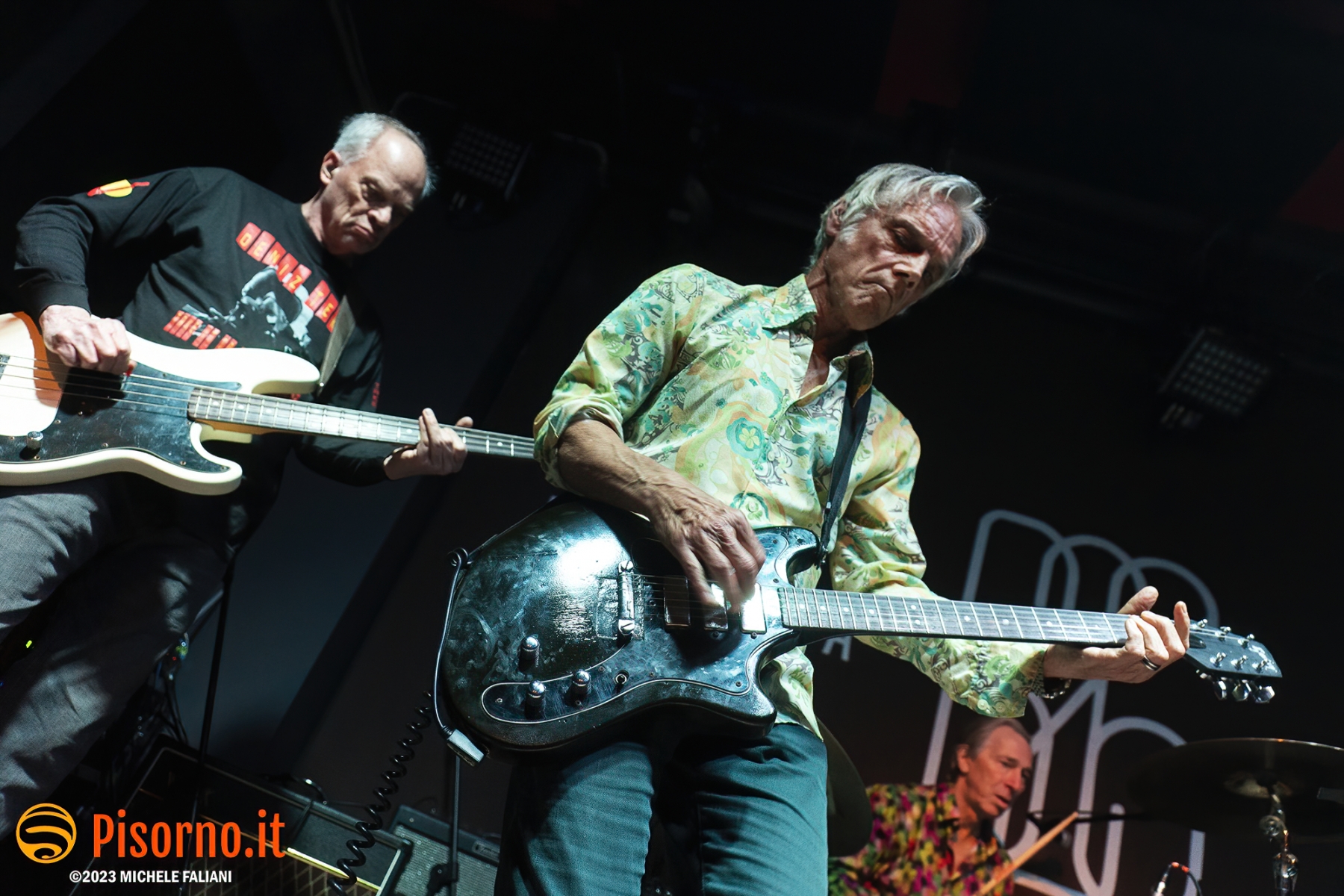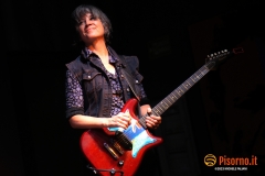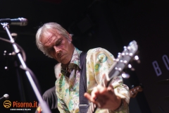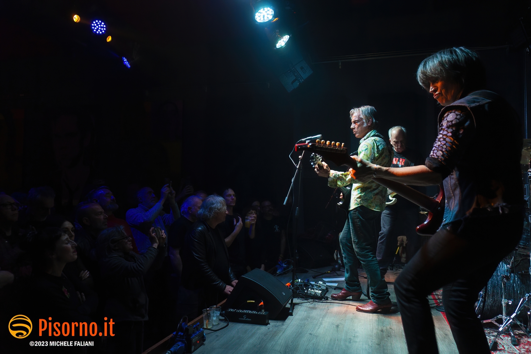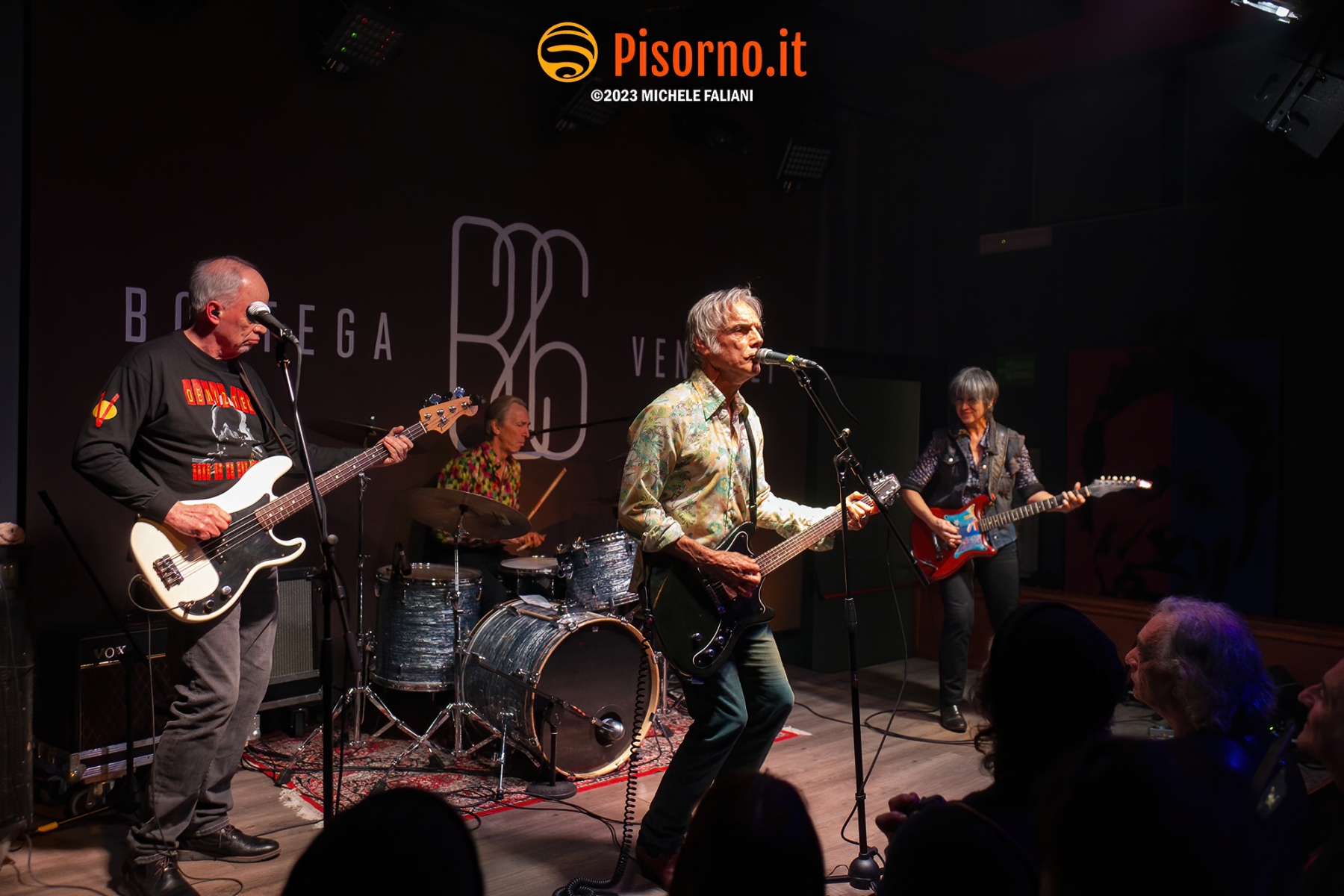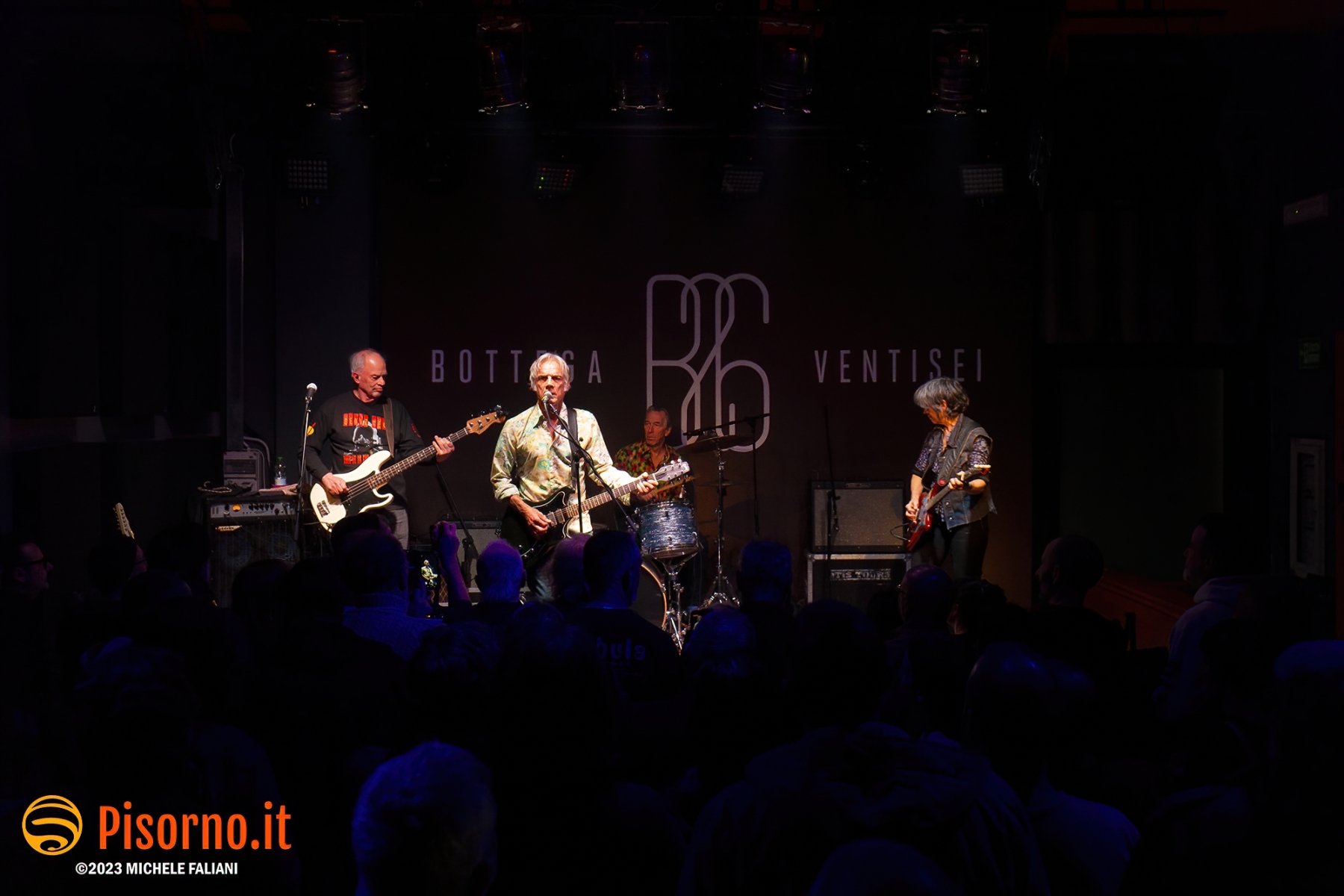 Fa un freddo boia a Poggibonsi, e inizia anche a piovere. Ma in mezzo alla zona industriale della cittadina c’è una sorta di oasi nel deserto, un locale caldo e intimo che ha il potere di farti sentire immediatamente a casa tua. Si chiama Bottega 26, e ci siamo entrati per la prima volta (e scommettiamo che non sarà l’ultima) per assistere al concerto di uno degli eroi del garage rock australiano, mister Deniz Tek, e della sua banda. I Radio Birdman sono stati una delle band più seminali di quel periodo in cui il rock down under sfornava un capolavoro dietro l’altro, e quindi eccoci qua ad attendere Deniz e la moglie Anne, insieme al basso di Bob Brown e ai tamburi di Keith Streng, che giusto pochi mesi fa abbiamo visto a Pisa nelle vesti di chitarrista dei Fleshtones. Qundici minuti dopo la mezzanotte il quartetto sale sul palco, accende gli ampli e partono le note di “Oh well” dei Fleetwood Mac, per un inizio incendiario di un set irresistibile. Presenti in scaletta, ovviamente, molte canzoni dei Radio Birdman alternate a quelle del recentissimo passato di Tek, fino ad arrivare a qualche estratto dell’ultimo album “Long before day”, uscito pochi mesi fa. Tek e soci vanno che è un piacere, tra riff di chitarra fuzzata e canzoni irresistibili che spaziano dal garage al punk al blues più sporco. C’è anche tempo per una cover degli Stooges e per una curiosa esecuzione del tema della Pantera Rosa, per 80 minuti incendiari e intensi. Un concerto perfetto in una serata perfetta. Grazie Mr. Tek, alla prossima.
