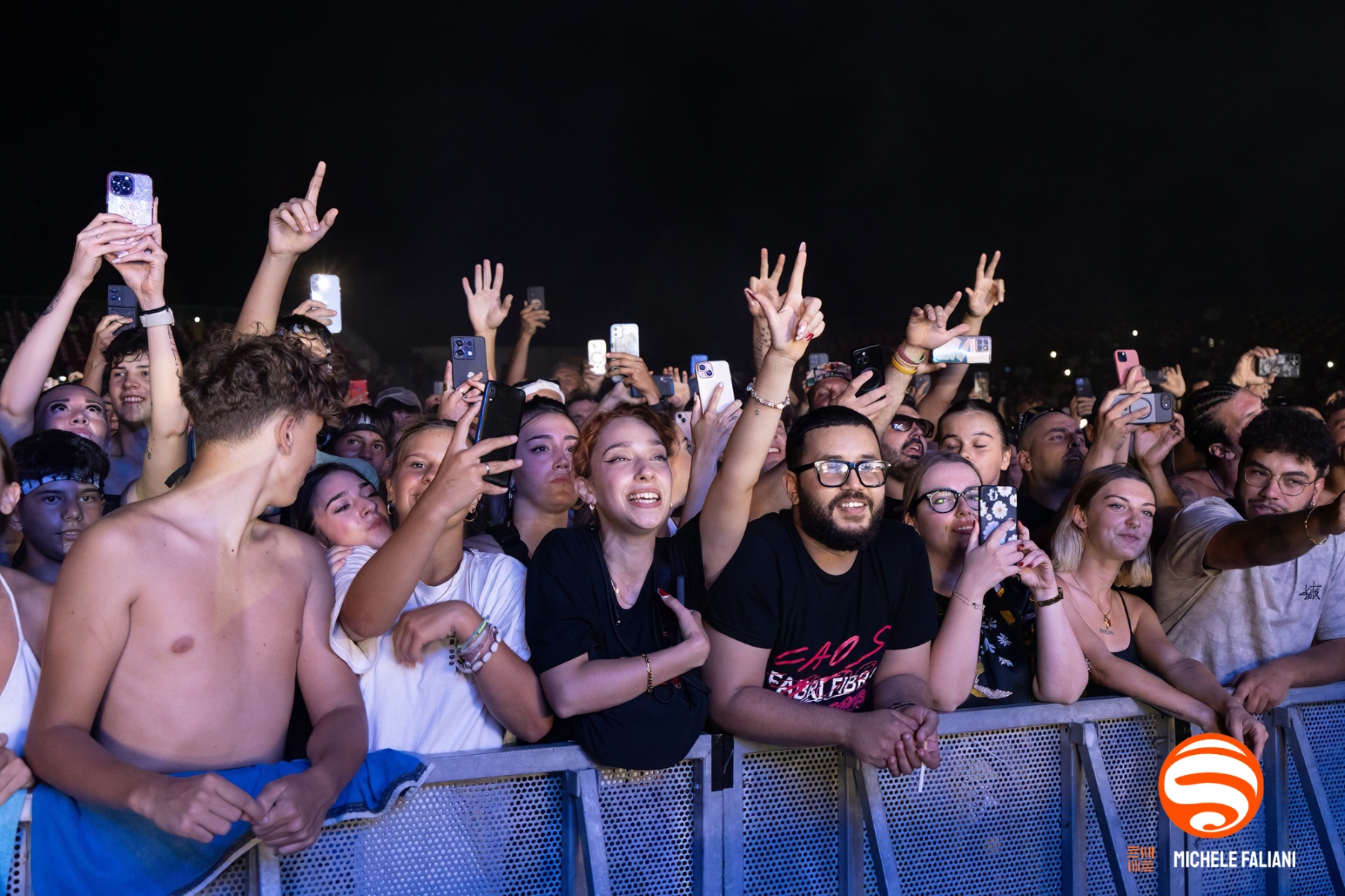 Non mancano le hit: Vip in trip, Applausi, Stavo pensando a te. Poi il finto commiato, il coro da stadio FIBRA-FIBRA che si alza compatto e le ultime due cannonate: Tranne te e Luna piena.