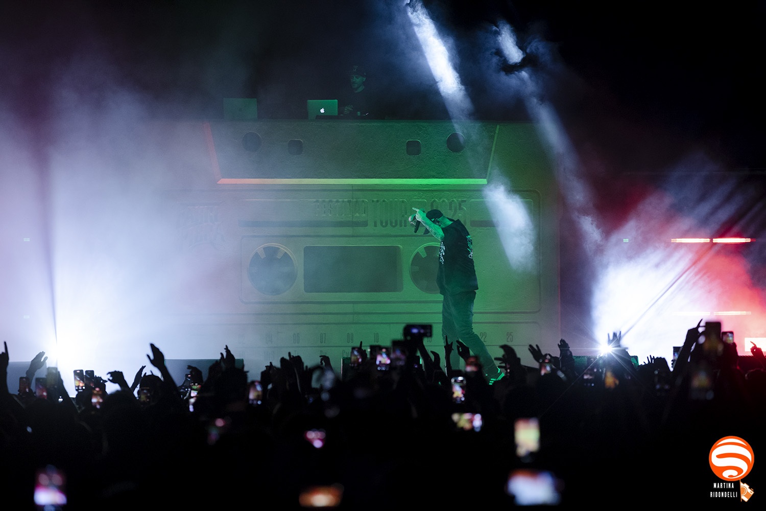 Il rapper di Senigallia, che ha da poco tagliato il traguardo dei trent’anni di carriera, ha regalato due ore di musica intensa e potente, ripercorrendo i momenti più significativi del suo percorso artistico e presentando i brani del nuovo progetto, nato durante un soggiorno in California e arricchito da collaborazioni con artisti come Gaia, Emma, Joan Thiele, Massimo Pericolo e Noyz Narcos.