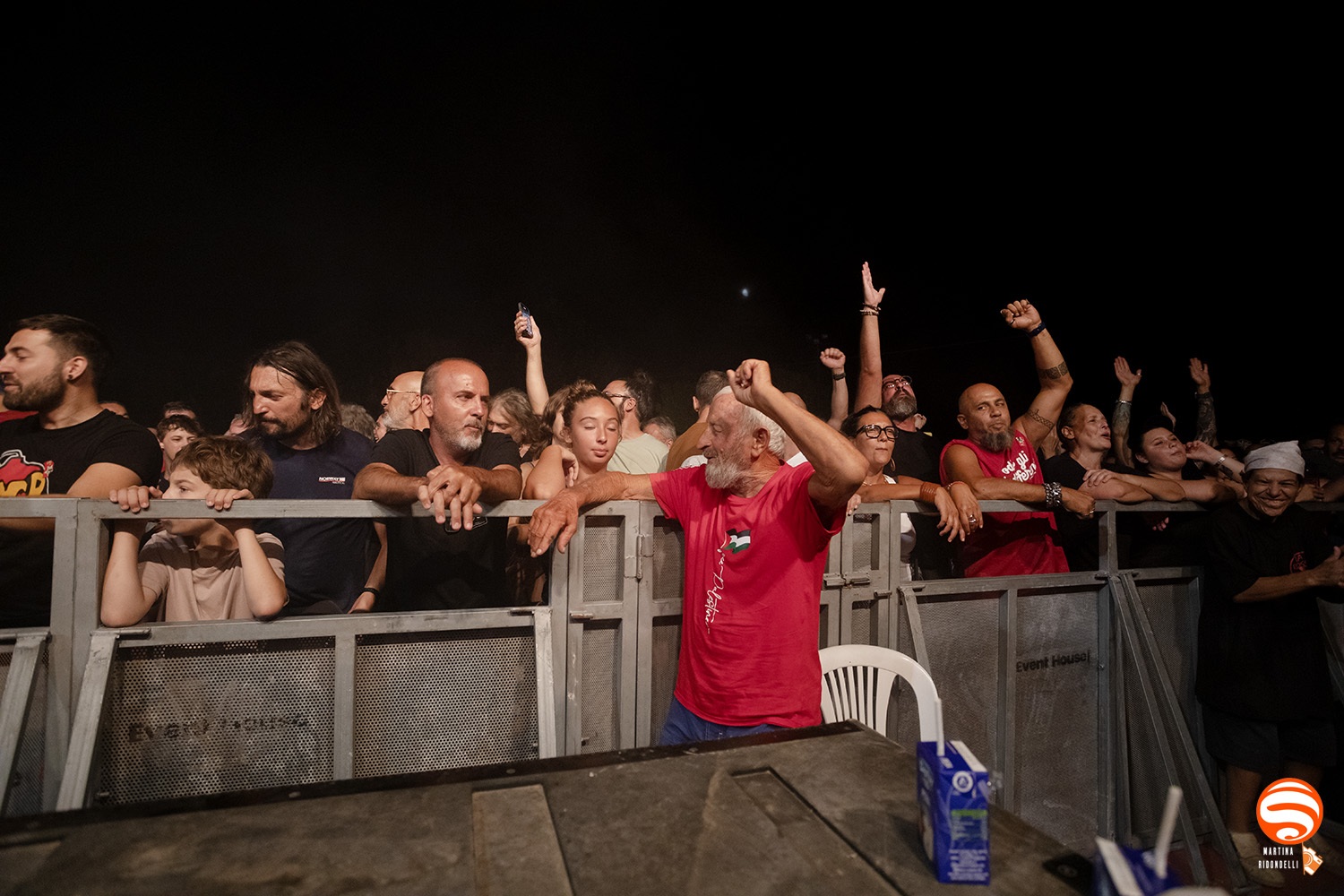 Il concerto ha alternato momenti festosi a brani più intensi e drammatici. Accanto ai classici da ballare, non sono mancati episodi di forte impatto emotivo come Ebano, Cento Passi e I funerali di Berlinguer, canzoni che raccontano una realtà ancora attuale e che hanno fatto la storia del combat folk italiano.