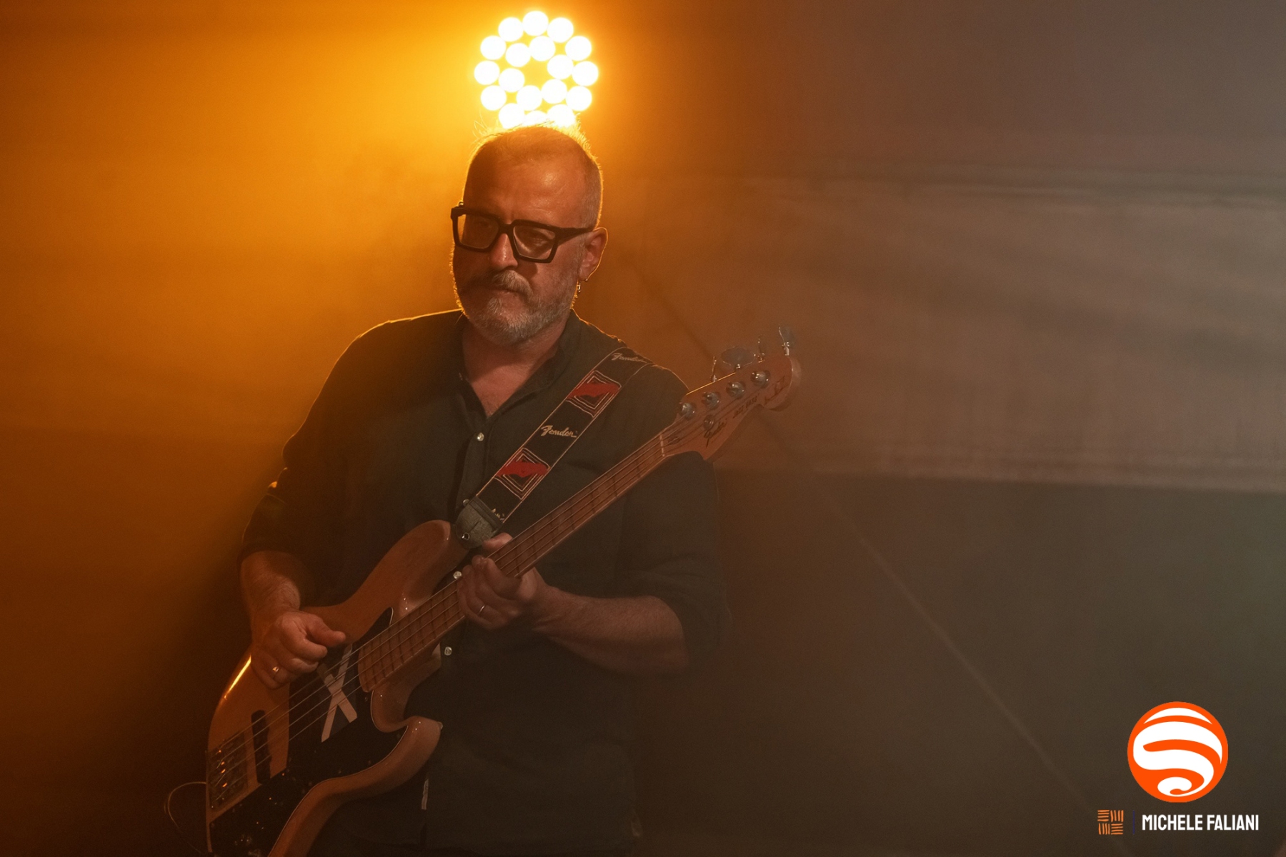 Verso le 23 è arrivato Cristiano Godano. L’ora tarda ha reso tutto più intimo: le luci morbide, il pubblico raccolto, il silenzio attento. La sua scaletta ha intrecciato passato e presente dei suoi dischi solisti, carezze e graffi: dalla dolcezza di Stammi accanto alla potenza di Dentro la ferita, fino alle sorprese inattese come Lazarus di Bowie e Karma Police dei Radiohead. Sul palco, insieme a lui, alcuni musicisti di primordine: Alessandro “Asso” Stefana, Danilo Gallo e Zeno De Rossi.