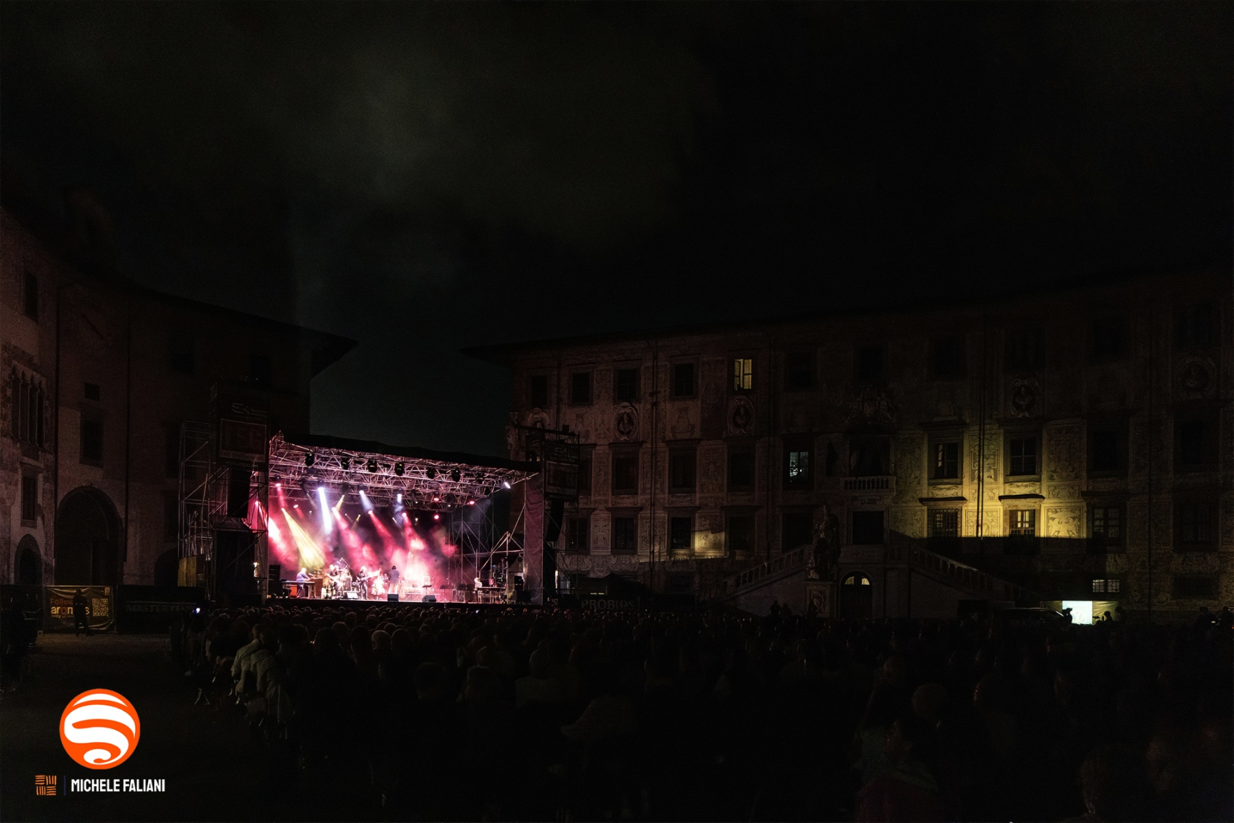 L’acquazzone che ho preso mentre giravo in scooter per il centro di Livorno in mattinata, e quello più breve che tanto per non farmi mancare niente, mi sono beccato nel centro di Empoli nelle prime ore del pomeriggio, mi preoccupavano non poco. Stava per cominciare di lì a poco la nuova edizione di Summer Knights, il bel festival che Live Emotion Group organizza in collaborazione con il Comune di Pisa in Piazza dei Cavalieri, oltretutto con il mio cantautore preferito. E perdermi un concerto di Francesco De Gregori per il maltempo mi avrebbe fatto incavolare non poco. Siamo stati fortunati, il tempo ha retto e Ciccio e la sua band sono saliti sul palco alle 21,15 precise, per iniziare uno dei primi concerti di questo tour che festeggia il cinquantesimo compleanno di Rimmel. Il via è stato dato con Mannaggia alla musica, una outtake di Viva l’Italia che prima di essere inserita in versione voce e chitarra nel live Bootleg del ’95, era una delle canzoni che componevano Una città per cantare, album del 1980 di Ron. Arrangiamento bellissimo per questa piccola gemma che non conoscono in molti, alla quale hanno fatto seguito due classici (Cercando un altro Egitto e Caterina, con il suono dell’Hammond di Primiano Di Biase in bella evidenza) e un’altra chicca, Caldo e scuro. Quando arriva il momento di iniziare con le canzoni di Rimmel, De Gregori dice che “questo concerto non è una celebrazione, ma il festeggiamento dei cinquant’anni di un disco che amate e che anch’io amo molto”. La promessa è quella di eseguire le canzoni con arrangiamenti molto simili a quelli del disco del 1975, promessa che non viene mantenuta con Pezzi di vetro che diventa, come nel disco Pastiche con Checco Zalone, una perla voce e pianoforte ancora più emozionante della versione originale. Rimmel non viene eseguito seguendo la stessa scaletta del disco, ma comunque non mancano Le storie di ieri (con la lunga e bellissima introduzione al contrabbasso eseguita dal capobanda Guido Guglielminetti) e Piccola mela, che nei miei 98 precedenti concerti di De Gregori non avevo mai ascoltato. Splendida anche Pablo, che è stata assente ingiustificata dalle setlist dei concerti per troppo tempo. Terminata l’esecuzione del disco (con Buonanotte fiorellino opportunamente lasciata da parte per l’immancabile bis) si ritorna a spaziare nello sterminato songbook del Principe, alternando canzoni che non possono mancare (La donna cannone, Sempre e per sempre) a qualche ripescaggio inaspettato (Adelante! Adelante!, sempre trascinante ed esaltante come tutto l’album da cui è tratta) che hanno reso il concerto una sorta di via di mezzo fra un Greatest Hits e il Nevergreen che ci siamo gustati a Milano lo scorso novembre. Poi gran finale con le due versioni di Buonanotte fiorellino, quella “classica” (con il pubblico invitato a ballare il valzer sottopalco) e quella 12&35 in stile Rainy Day Woman di Bob Dylan, con tanto di sezione fiati a spuntare sul palco. Dopo solo applausi, per un De Gregori in stato di grazia che canta sempre meglio, una band che ormai è molto di più di un semplice gruppo di strumentisti che accompagnano un cantautore, e per un album che ha compiuto mezzo secolo. Oltre 2500 persone sfollano felici dopo 100 minuti di note e parole meravigliose. Rendetevi conto cosa il maltempo stava per rovinare.