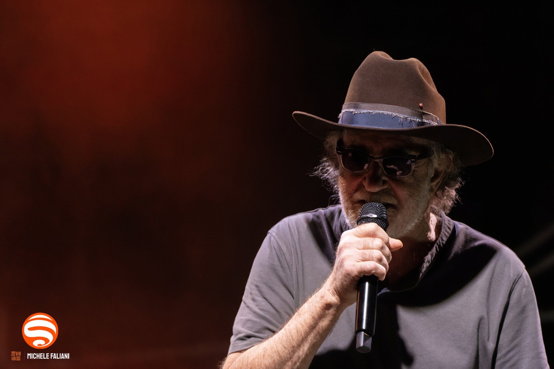 L’acquazzone che ho preso mentre giravo in scooter per il centro di Livorno in mattinata, e quello più breve che tanto per non farmi mancare niente, mi sono beccato nel centro di Empoli nelle prime ore del pomeriggio, mi preoccupavano non poco. Stava per cominciare di lì a poco la nuova edizione di Summer Knights, il bel festival che Live Emotion Group organizza in collaborazione con il Comune di Pisa in Piazza dei Cavalieri, oltretutto con il mio cantautore preferito. E perdermi un concerto di Francesco De Gregori per il maltempo mi avrebbe fatto incavolare non poco. Siamo stati fortunati, il tempo ha retto e Ciccio e la sua band sono saliti sul palco alle 21,15 precise, per iniziare uno dei primi concerti di questo tour che festeggia il cinquantesimo compleanno di Rimmel. Il via è stato dato con Mannaggia alla musica, una outtake di Viva l’Italia che prima di essere inserita in versione voce e chitarra nel live Bootleg del ’95, era una delle canzoni che componevano Una città per cantare, album del 1980 di Ron. Arrangiamento bellissimo per questa piccola gemma che non conoscono in molti, alla quale hanno fatto seguito due classici (Cercando un altro Egitto e Caterina, con il suono dell’Hammond di Primiano Di Biase in bella evidenza) e un’altra chicca, Caldo e scuro. Quando arriva il momento di iniziare con le canzoni di Rimmel, De Gregori dice che “questo concerto non è una celebrazione, ma il festeggiamento dei cinquant’anni di un disco che amate e che anch’io amo molto”. La promessa è quella di eseguire le canzoni con arrangiamenti molto simili a quelli del disco del 1975, promessa che non viene mantenuta con Pezzi di vetro che diventa, come nel disco Pastiche con Checco Zalone, una perla voce e pianoforte ancora più emozionante della versione originale. Rimmel non viene eseguito seguendo la stessa scaletta del disco, ma comunque non mancano Le storie di ieri (con la lunga e bellissima introduzione al contrabbasso eseguita dal capobanda Guido Guglielminetti) e Piccola mela, che nei miei 98 precedenti concerti di De Gregori non avevo mai ascoltato. Splendida anche Pablo, che è stata assente ingiustificata dalle setlist dei concerti per troppo tempo. Terminata l’esecuzione del disco (con Buonanotte fiorellino opportunamente lasciata da parte per l’immancabile bis) si ritorna a spaziare nello sterminato songbook del Principe, alternando canzoni che non possono mancare (La donna cannone, Sempre e per sempre) a qualche ripescaggio inaspettato (Adelante! Adelante!, sempre trascinante ed esaltante come tutto l’album da cui è tratta) che hanno reso il concerto una sorta di via di mezzo fra un Greatest Hits e il Nevergreen che ci siamo gustati a Milano lo scorso novembre. Poi gran finale con le due versioni di Buonanotte fiorellino, quella “classica” (con il pubblico invitato a ballare il valzer sottopalco) e quella 12&35 in stile Rainy Day Woman di Bob Dylan, con tanto di sezione fiati a spuntare sul palco. Dopo solo applausi, per un De Gregori in stato di grazia che canta sempre meglio, una band che ormai è molto di più di un semplice gruppo di strumentisti che accompagnano un cantautore, e per un album che ha compiuto mezzo secolo. Oltre 2500 persone sfollano felici dopo 100 minuti di note e parole meravigliose. Rendetevi conto cosa il maltempo stava per rovinare.