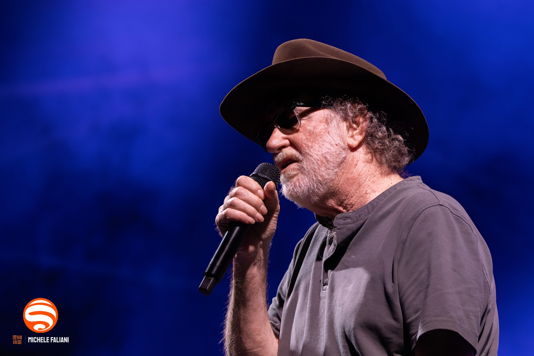 L’acquazzone che ho preso mentre giravo in scooter per il centro di Livorno in mattinata, e quello più breve che tanto per non farmi mancare niente, mi sono beccato nel centro di Empoli nelle prime ore del pomeriggio, mi preoccupavano non poco. Stava per cominciare di lì a poco la nuova edizione di Summer Knights, il bel festival che Live Emotion Group organizza in collaborazione con il Comune di Pisa in Piazza dei Cavalieri, oltretutto con il mio cantautore preferito. E perdermi un concerto di Francesco De Gregori per il maltempo mi avrebbe fatto incavolare non poco. Siamo stati fortunati, il tempo ha retto e Ciccio e la sua band sono saliti sul palco alle 21,15 precise, per iniziare uno dei primi concerti di questo tour che festeggia il cinquantesimo compleanno di Rimmel. Il via è stato dato con Mannaggia alla musica, una outtake di Viva l’Italia che prima di essere inserita in versione voce e chitarra nel live Bootleg del ’95, era una delle canzoni che componevano Una città per cantare, album del 1980 di Ron. Arrangiamento bellissimo per questa piccola gemma che non conoscono in molti, alla quale hanno fatto seguito due classici (Cercando un altro Egitto e Caterina, con il suono dell’Hammond di Primiano Di Biase in bella evidenza) e un’altra chicca, Caldo e scuro. Quando arriva il momento di iniziare con le canzoni di Rimmel, De Gregori dice che “questo concerto non è una celebrazione, ma il festeggiamento dei cinquant’anni di un disco che amate e che anch’io amo molto”. La promessa è quella di eseguire le canzoni con arrangiamenti molto simili a quelli del disco del 1975, promessa che non viene mantenuta con Pezzi di vetro che diventa, come nel disco Pastiche con Checco Zalone, una perla voce e pianoforte ancora più emozionante della versione originale. Rimmel non viene eseguito seguendo la stessa scaletta del disco, ma comunque non mancano Le storie di ieri (con la lunga e bellissima introduzione al contrabbasso eseguita dal capobanda Guido Guglielminetti) e Piccola mela, che nei miei 98 precedenti concerti di De Gregori non avevo mai ascoltato. Splendida anche Pablo, che è stata assente ingiustificata dalle setlist dei concerti per troppo tempo. Terminata l’esecuzione del disco (con Buonanotte fiorellino opportunamente lasciata da parte per l’immancabile bis) si ritorna a spaziare nello sterminato songbook del Principe, alternando canzoni che non possono mancare (La donna cannone, Sempre e per sempre) a qualche ripescaggio inaspettato (Adelante! Adelante!, sempre trascinante ed esaltante come tutto l’album da cui è tratta) che hanno reso il concerto una sorta di via di mezzo fra un Greatest Hits e il Nevergreen che ci siamo gustati a Milano lo scorso novembre. Poi gran finale con le due versioni di Buonanotte fiorellino, quella “classica” (con il pubblico invitato a ballare il valzer sottopalco) e quella 12&35 in stile Rainy Day Woman di Bob Dylan, con tanto di sezione fiati a spuntare sul palco. Dopo solo applausi, per un De Gregori in stato di grazia che canta sempre meglio, una band che ormai è molto di più di un semplice gruppo di strumentisti che accompagnano un cantautore, e per un album che ha compiuto mezzo secolo. Oltre 2500 persone sfollano felici dopo 100 minuti di note e parole meravigliose. Rendetevi conto cosa il maltempo stava per rovinare.