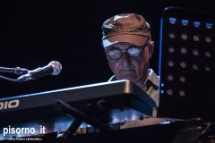 Dietro al palco in lontananza, si vedono minacciosi fulmini, ma soltanto un forte vento estivo ha portato un po’ di movimento scompigliando capelli e facendo volare i fogli della scaletta. La complicità sul palco di tutti i musicisti ha creato anche in questa occasione il contesto giusto per risate e intermezzi divertenti.