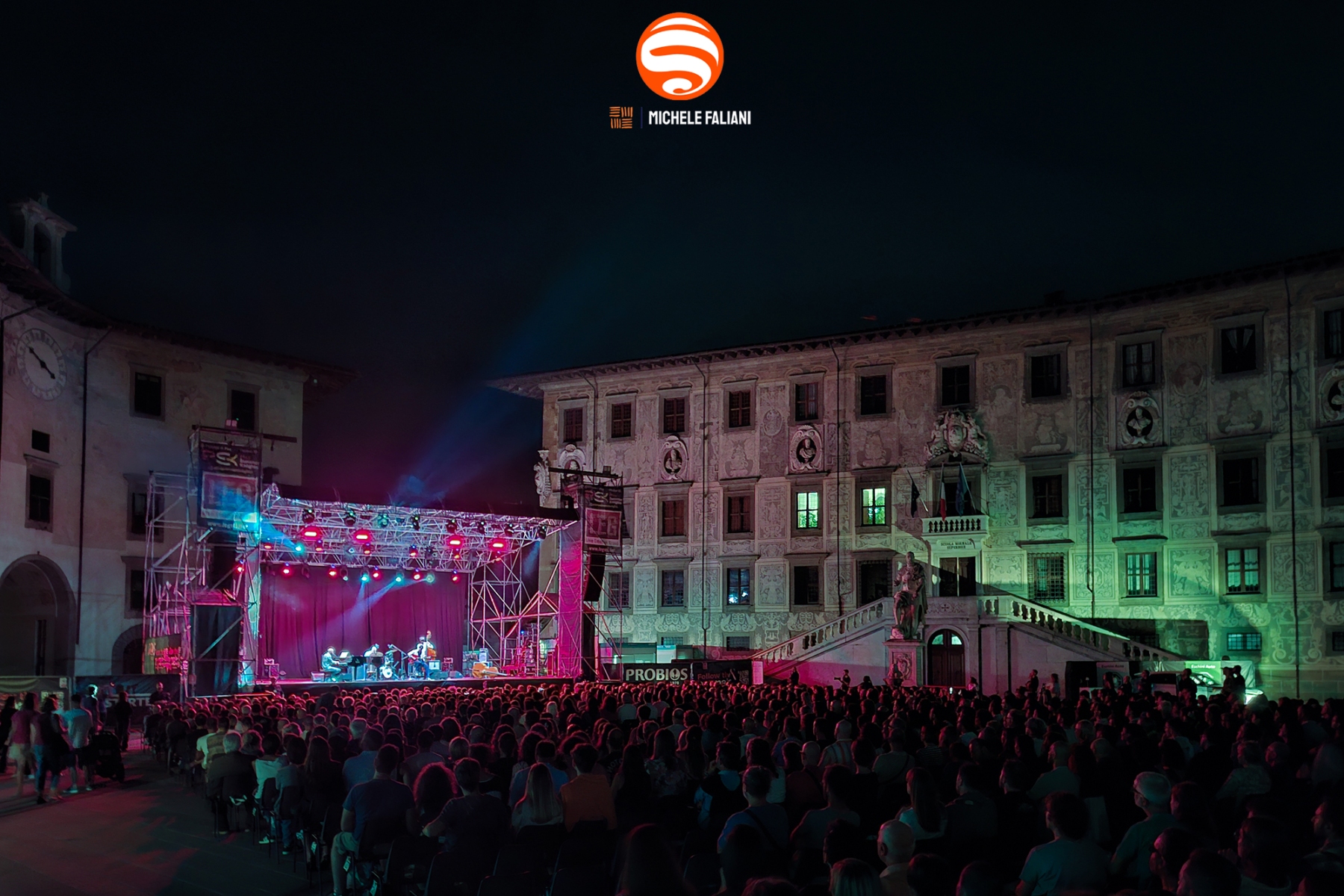 Certe sere hanno il potere di fermare il tempo. A Pisa, davanti alla facciata austera della Scuola Normale Superiore, i Gatti Mezzi e il Summer Knights hanno costruito un concerto che è stato insieme rito collettivo e festa popolare. Un evento che ha radunato in Piazza dei Cavalieri vecchi fan, nuovi ascoltatori e semplici curiosi, tutti attratti da quella miscela unica di ironia toscana, swing sghembo e jazz di provincia che da anni rende la band un caso a sé nel panorama italiano.