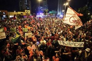 La situazione brasiliana aiuta a riflettere anche su quel che sta succedendo in Venezuela dove le proteste violente ci sono, ma di un altro segno e per opposte rivendicazioni. Praticamente tutte le sigle che hanno organizzato lo sciopero generale – dal Partito dei Lavoratori, alla sua sinistra più radicale, ai sindacati, ai movimenti dei Senza terra e dei Senza tetto, alla chiesa di base – hanno sottoscritto un documento consegnato all’ambasciata del Venezuela a Brasilia: per esprimere il proprio appoggio alla “rivoluzione bolivariana” e per condannare le ingerenze esterne e gli attacchi delle destre, il cui volto più mediatico, Lilian Tintori, ha sostenuto la campagna elettorale di Macri in Argentina e il governo di Temer.