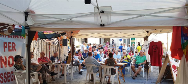 Purtroppo, Tonarelli si è ammalata ed a introdurre l’incontro ci hanno pensato Paolo Gianardi di Restiamo umani e Sara Martellacci, laureata a pieni voti con una tesi sul secondo biennio rosso a Piombino: alcuni degli operai, delegati e militanti protagonisti delle mobilitazioni di fini anni settanta, intervistati nella tesi di Martellacci, erano presenti e sono intervenuti nella discussione. Ha preso la parola fra gli altri anche Riccardo Antonini, licenziato dalle ferrovie per avere aiutato i familiari delle vittime della strage di Viareggio del 2009 a cercare la verità; Antonini è il coordinatore regionale de Il sindacato è un’altra cosa-Opposizione in Cgil.