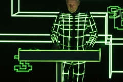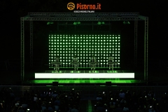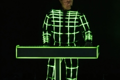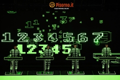 Un trionfo. Non si può descrivere con altre parole il concerto dei Kraftwerk all’Ultravox di Firenze. Fra cosplayer vestiti come nella copertina di The man machine, musicisti famosi e semplici appassionati di musica elettronica, il concerto dei Kratwerk è volato via fra una serie infinita di visual magnifici proiettati dietro i corpi dei quattro musicisti, immobili per tutta la durata dello show dietro le loro console e con le loro tute illuminate dai led, a voler confermare che, dopo più di 40 anni, they are still the robots. E poco importa se della formazione originale c’è rimasto solo Ralf Hutter (Florian Schneider è scomparso tre fa e Karl Bartos e Wolfgang Flur abbandonarono la formazione a fine anni 80), quello che conta sono le canzoni e quelle funzionano alla perfezione anche adesso. Anzi, suonano (misteriosamente) ancora più moderne ed attuali di tanta roba che esce ai giorni nostri. Una scaletta che spazia attraverso tutti i dischi meravigliosi del quartetto, da Autobahn a Radioactivity, da Tour de France a Computer World, senza tralasciare quel capolavoro immortale che è Electric Café. E proprio durante Music Non Stop, una delle tracce che lo compongono, i Kraftwerk avrebbero dovuto abbandonare il palco uno per volta, risalendo le scale che dal palco portano ai camerini: un problema all’impianto elettrico ha fatto saltare la corrente a un paio di minuti dalla fine dello show, e i quattro sono rimasti sul palco a salutare i fans e a ricevere la loro meritatissima standing ovation. Perché nonostante un finale abortito, la serata è stata perfetta, con il pubblico (o almeno quello che non aveva pagato i biglietti delle poltronissime) a ballare ai lati del palco sui suoni magnifici di The model o di Trans Europe Express e i nostri sensi, o almeno vista ed udito, ammaliati da tanta bellezza.