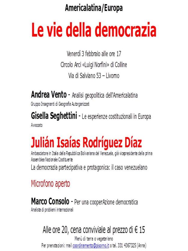 Potremo avvalerci del contributo di Julián Isaías Rodríguez Díaz, attuale Ambasciatore in Italia della Repubblica Bolivariana del Venezuela, già Vicepresidente esecutivo dell’Assemblea Nazionale Costituente e Procuratore Generale della Repubblica. Il nostro ospite è un esperto di diritto (in particolare costituzionale e del lavoro) ed è autore di numerose pubblicazioni.