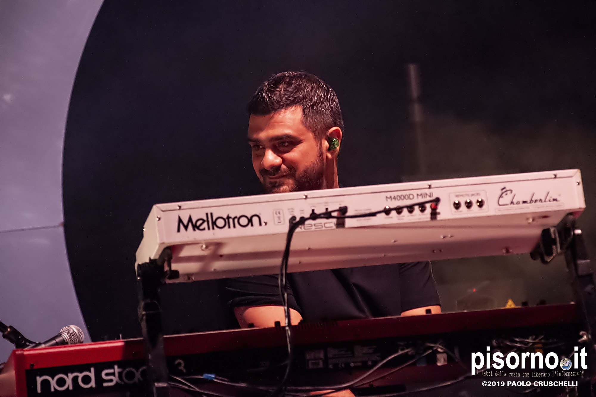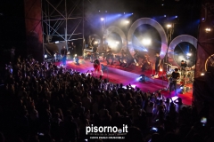 A circa metà concerto, il pubblico che fino a quel momento era rimasto seduto negli spazi dell’anfiteatro, si alza per andare a ballare e cantare sotto il palco, e l’atmosfera diventa decisamente più elettrica.