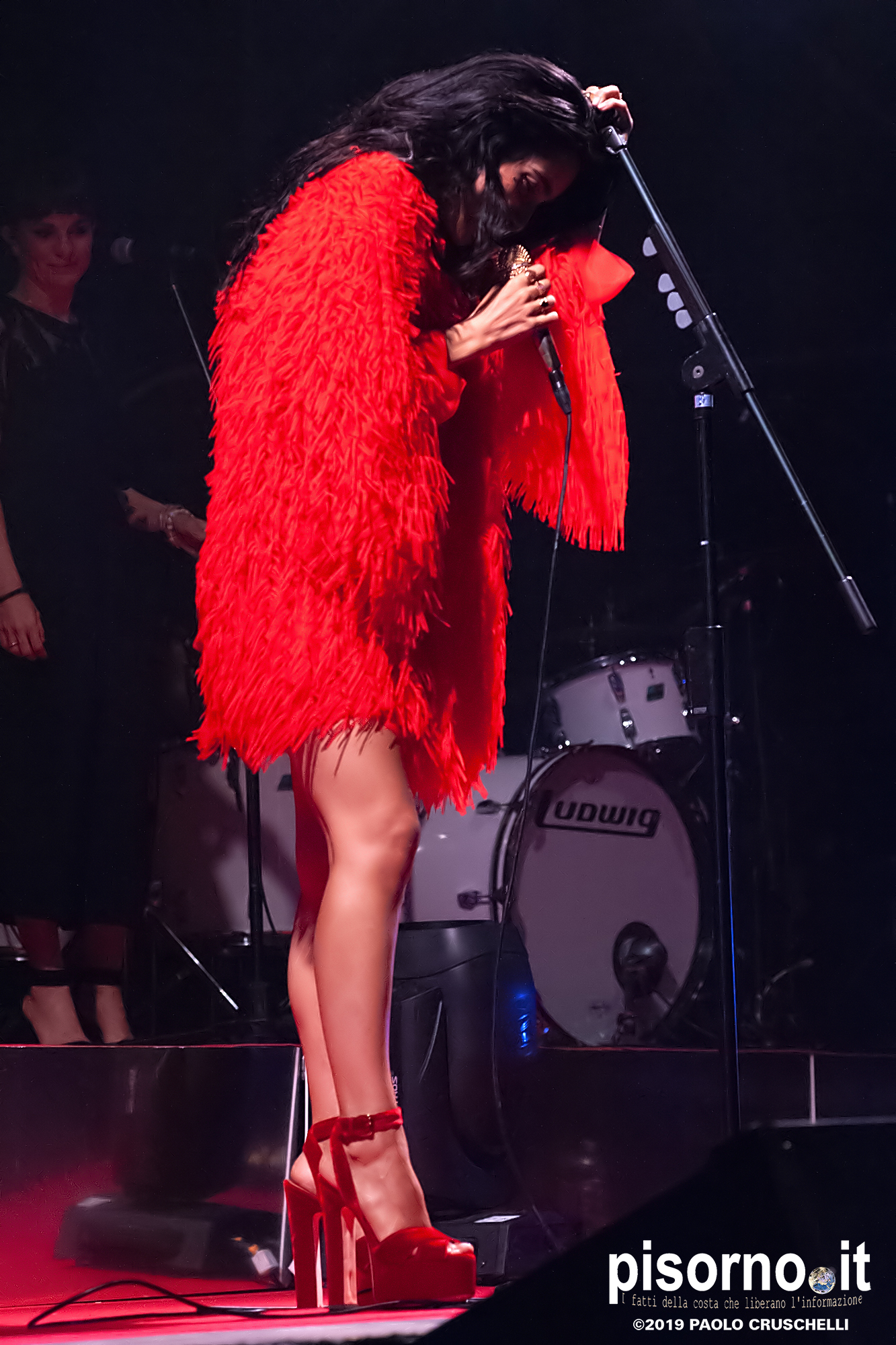 Ottimo controllo vocale, come sempre, e ottima gestione del palco, Levante sembra essere capace di tutto, anche di saltare e correre su tacchi incredibili, spostandosi da una parte all’altra del palco.