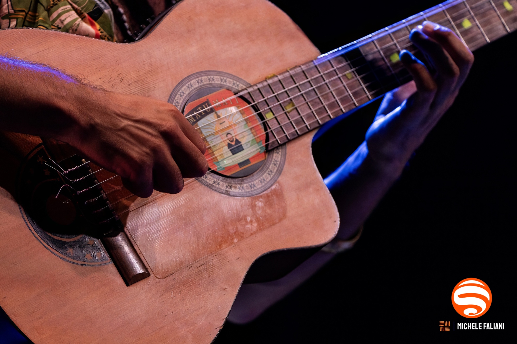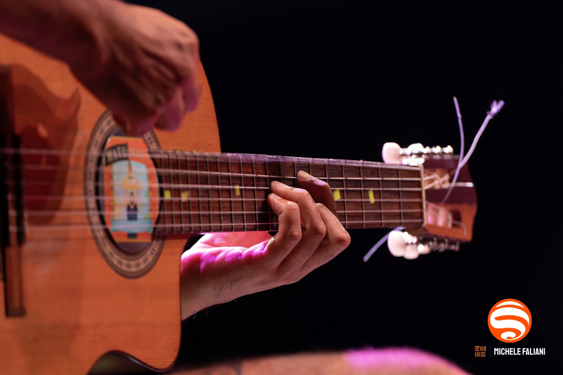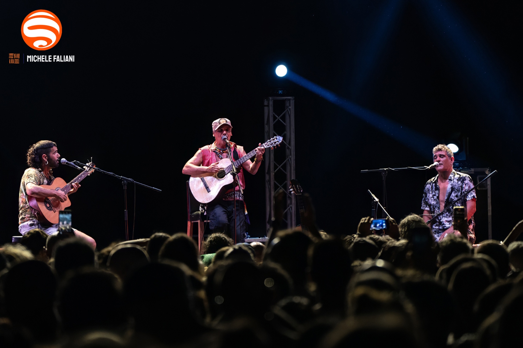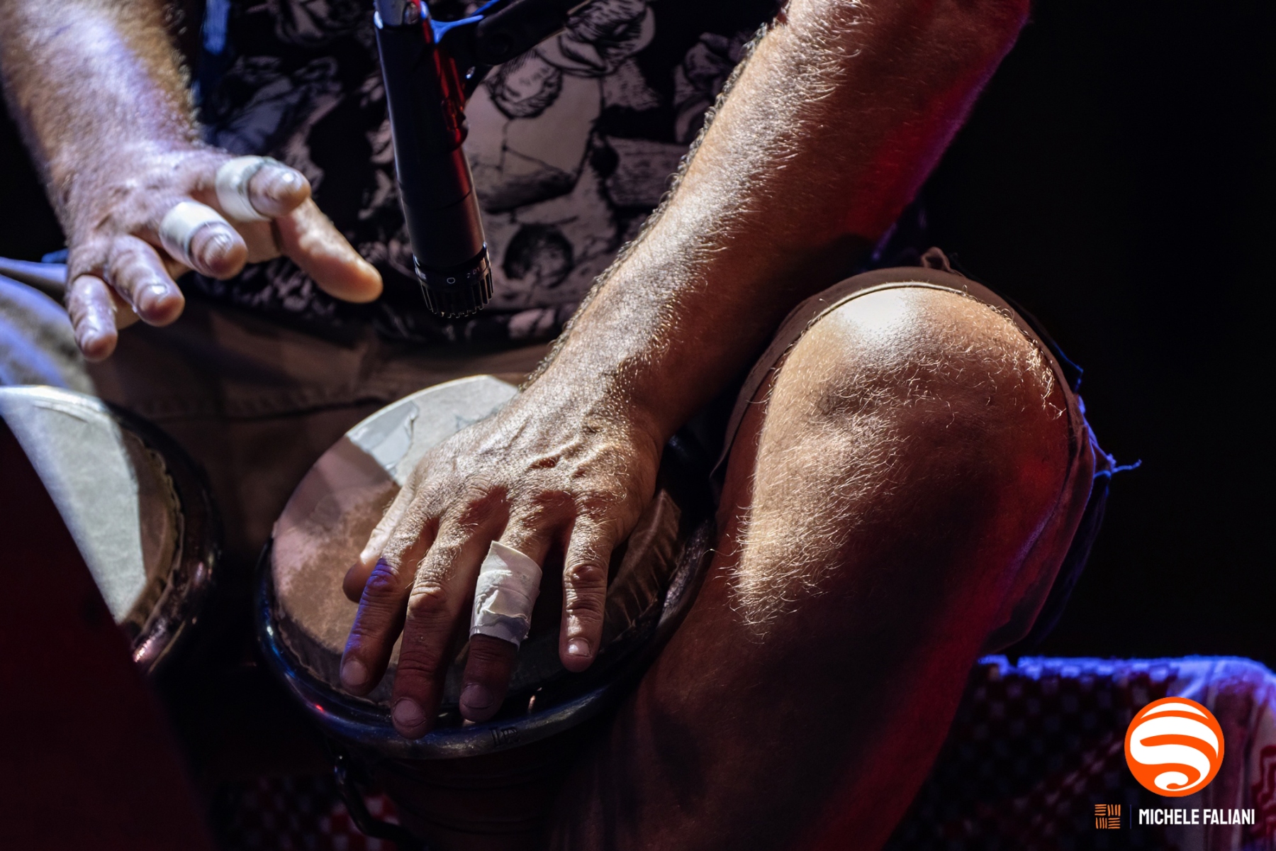 All’inizio il cantautore franco–ispanico parte morbido, quasi a voler prendere le misure al pubblico. Ma bastano pochi minuti perché la miccia si accenda: un crescendo di ritmi meticci, dalla rumba al reggae, dalla cumbia al rock, fino a far esplodere la folla in canti e danze sfrenate. Sul palco, solo lui, il percussionista e il chitarrista acustico: formazione essenziale, energia infinita.