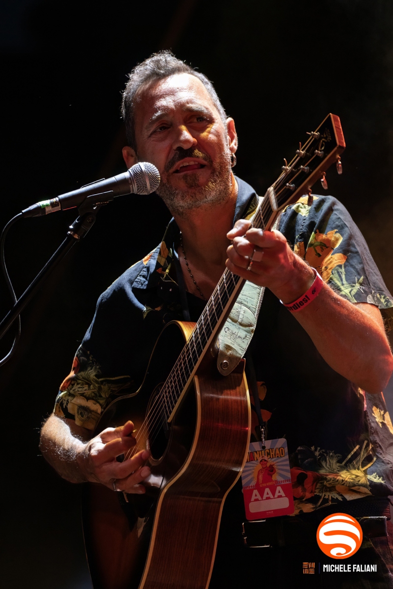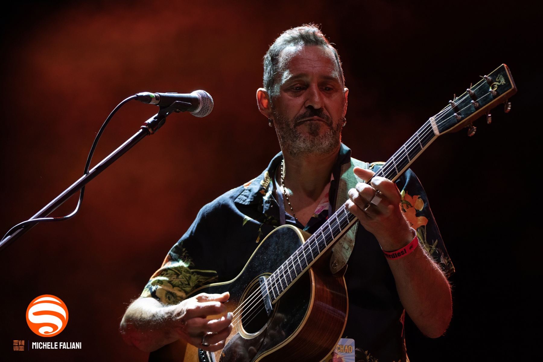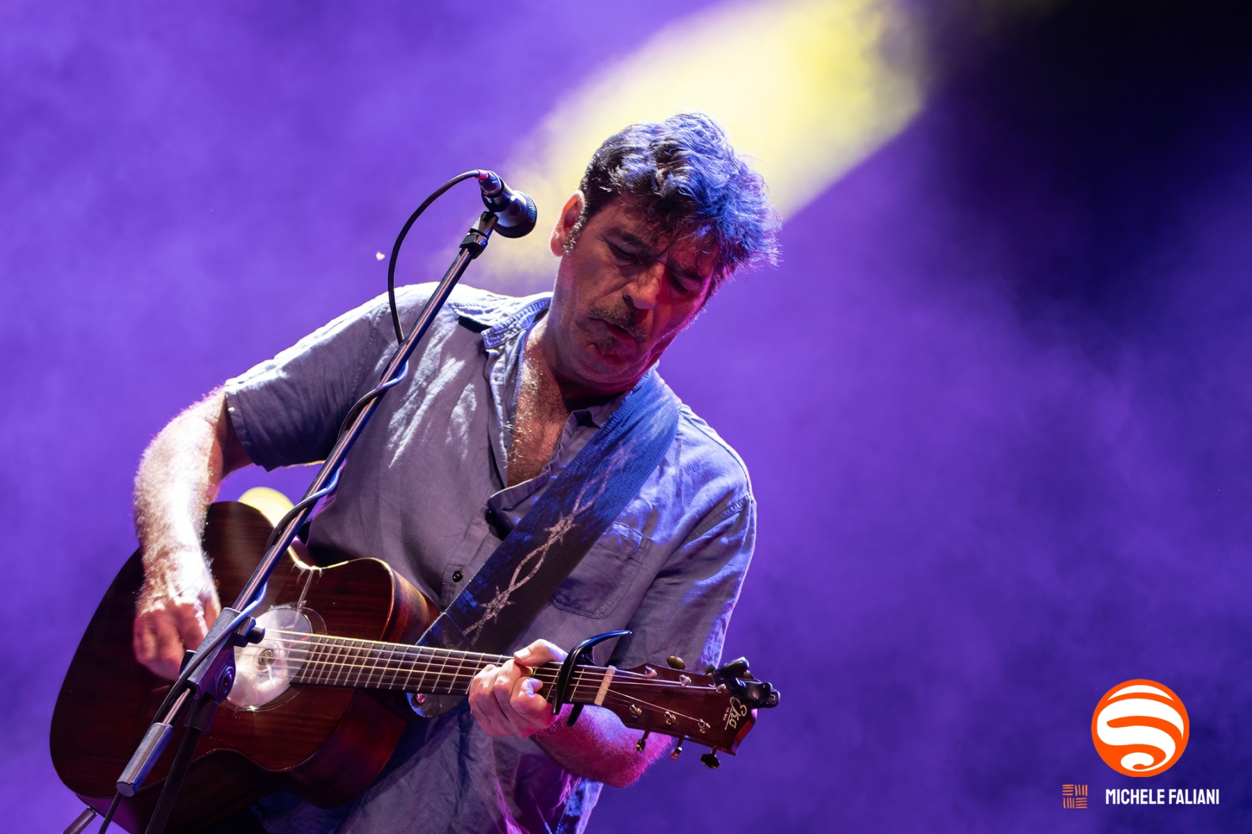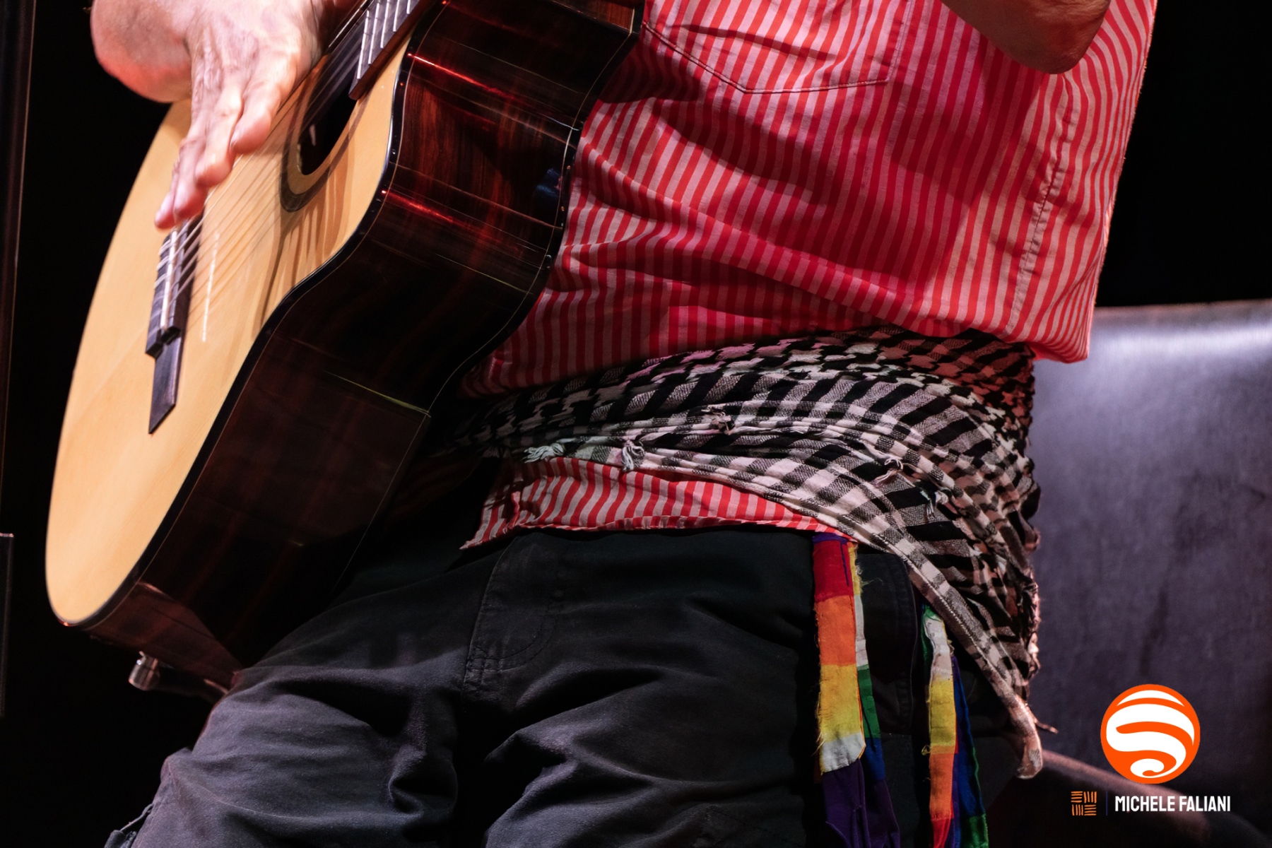 Ad aprire la serata è stato Bobo Rondelli, a sorpresa annunciato come opening act appena 24 ore prima dello spettacolo e in forma splendida. Qualche classico del suo repertorio in chiave acustica, “Come i carnevali”, “Madame Sitrì” e “Dal Balcone” su tutte, a fare da antipasto al ritorno di Manu Chao, salito sul palco sventolando una kefiah palestinese, a ricordare che il genocidio a Gaza è ancora in corso.