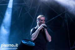 Il pubblico sotto palco in fremente attesa, aspetta l’ingresso di Masini. All’improvviso, nel buio di Villa Bertelli, si accendono le luci, che illuminano il gruppo composto da batteria, basso e 2 chitarre; la voce di Masini che arriva da 2 maxi schermi posti sul fondo della scena e 3 schermi più piccoli posti sul palco. Masini canta per tutto il primo brano fuori dalla scena per poi fare il suo ingresso dal fondo della platea, salutando il pubblico in visibilio, per poi salire sul palco e iniziare lo show.