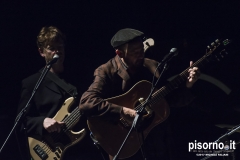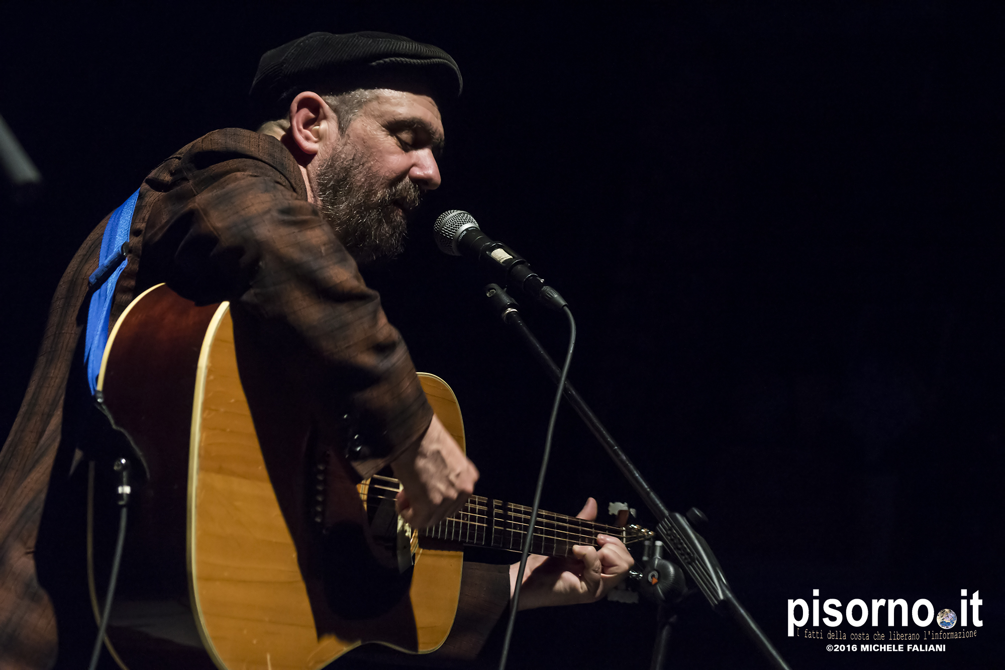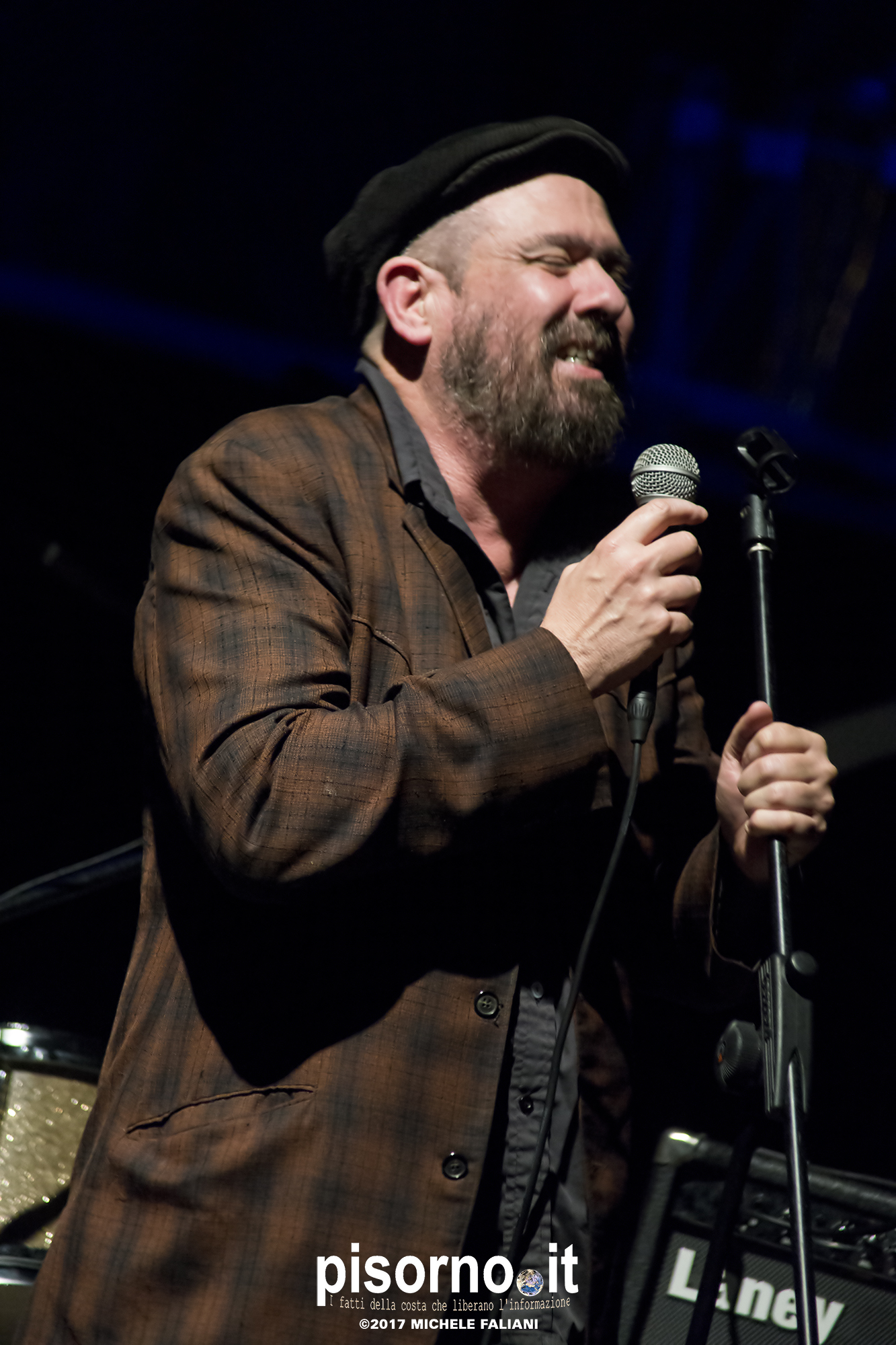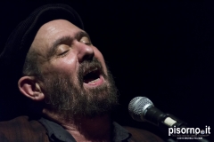 Così mi ha salutato Mark Eitzel appena arrivato all’Aurora per il soundcheck. E io, che Mark Eitzel lo seguo dal 1987, da quando cioè comprai “Engine” degli American Music Club (la sua vecchia band), credevo di essere in film, vedendo uno dei miei artisti preferiti montare la strumentazione, scherzare con i suoi musicisti e sorseggiare birra. Un uomo gentile, umile, a tratti anche timido. Che mi ringrazia per la cena (“Ci avete trattati come dei re, come se ce lo meritassimo”), e mi chiede di spengere tutte le luci colorate per lasciare solo un faro neutro su di lui. E poi comincia il concerto. Bellissimo, ça va sans dire. Canzoni dall’ultimo lavoro “Hey Mr. Ferryman” e dai vecchi dischi degli American Music Club, quasi a voler mettere a nudo tutto sé stesso, dal passato più lontano fino a quello più prossimo. Con una voce che più espressiva non si può, a cavallo fra Tom Waits e Leonard Cohen, che fa venire i brividi e fa drizzare i peli sulle braccia. E che regala un’ora e mezzo intensissima, emozionante, bella. Ed impossibile da riuscire a spiegare solo con le parole.