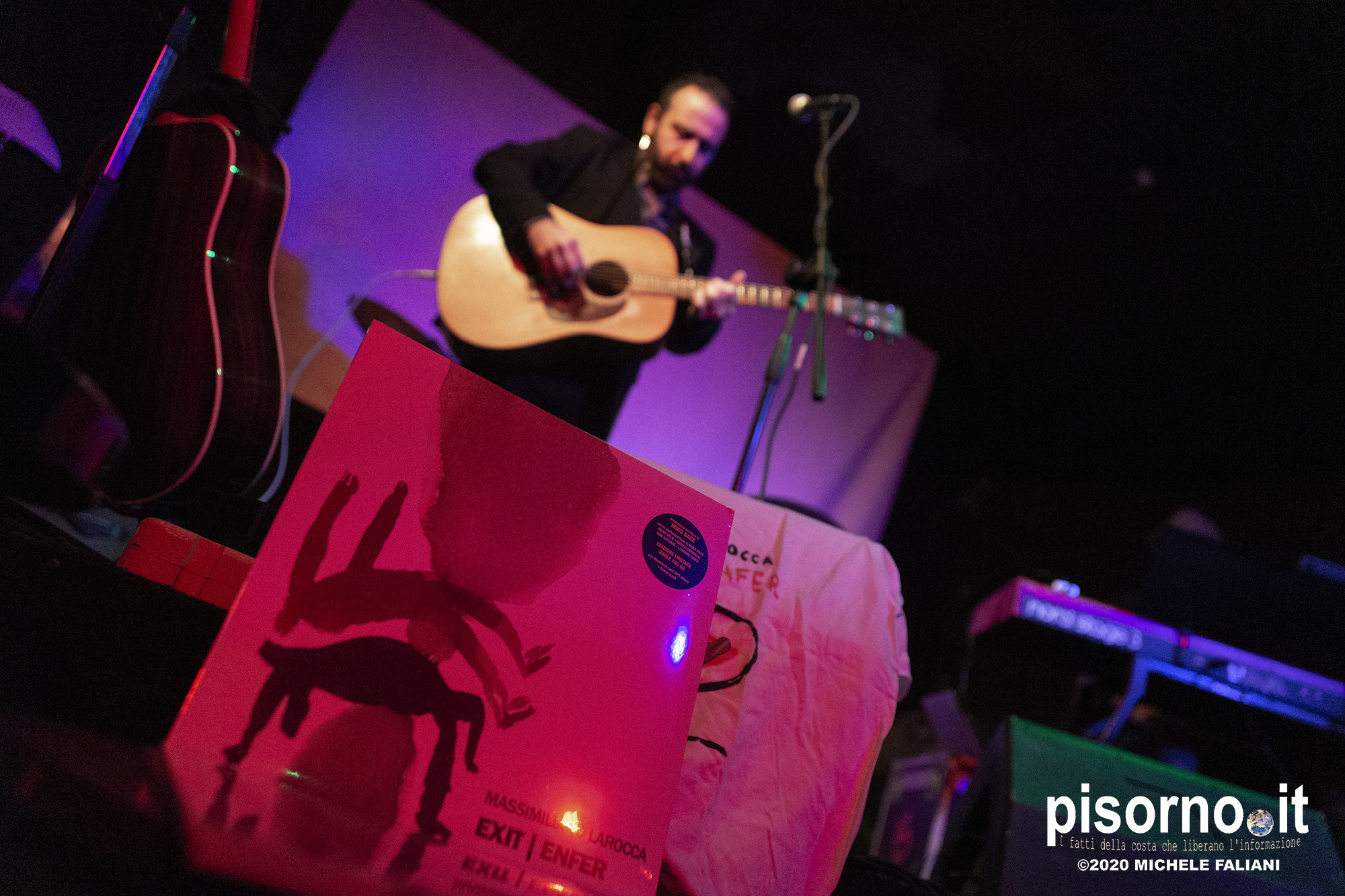 “Exit | Enfer”, il quinto album di Massimiliano Larocca, è uscito da quasi un anno, ma lockdown e restrizioni ne hanno impedito un’accurata promozione. Un disco importante, prodotto dall’ex Bad Seed Hugo Race e con ospiti prestigiosi come Howe Gelb, Don Antonio, Lorenzo Corti ed Enrico Gabrielli, proposto nella serata al Caracol in un’inconsueta veste unplugged, da Max e dal pianista Gianfilippo Boni. Tutta la scaletta incentrata sull’album, eseguito quasi per intero, più qualche escursione nei repertori di alcuni dei musicisti che hanno maggiormente contribuito alla formazione di Larocca (Luigi Tenco, Bob Dylan e Lou Reed), eseguite in modo più che convincente. Ma anche i brani di “Exit | Enfer”, pur in versione stripped-down, hanno mantenuto intatte la loro forza espressiva e il loro fascino. Menzione particolare per “Cose che non cambiano”, eseguita in due versioni diverse, per “Black love” e per “Perdiamoci”, e per il finale, con la partecipazione di Dome La Muerte, per una bella versione di “Sunday morning” dei Velvet Underground.