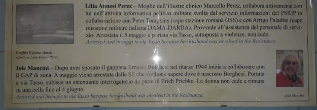 In un clima di eccezionale commozione sono state visitate le celle al cui interno venivano reclusi partigiani e cittadini accusati di sostenere la Resistenza raggiungendo l’apice del coinvolgimento emotivo quando Jole Mancini, moglie del gappista Ernesto Borghesi, è ritornata nella cella in cui è stata detenuta e a lungo sottoposta a brutali interrogatori sino al 4 giugno 1944. I presenti hanno avuto la fortuna di ascoltare direttamente dalle sue parole il racconto della sua drammatica esperienza dall’arresto alla detenzione, passando per i lunghi interrogatori, sino al giorno della liberazione, creando un clima di forte commozione che ha profondamente toccato tutti i convenuti.