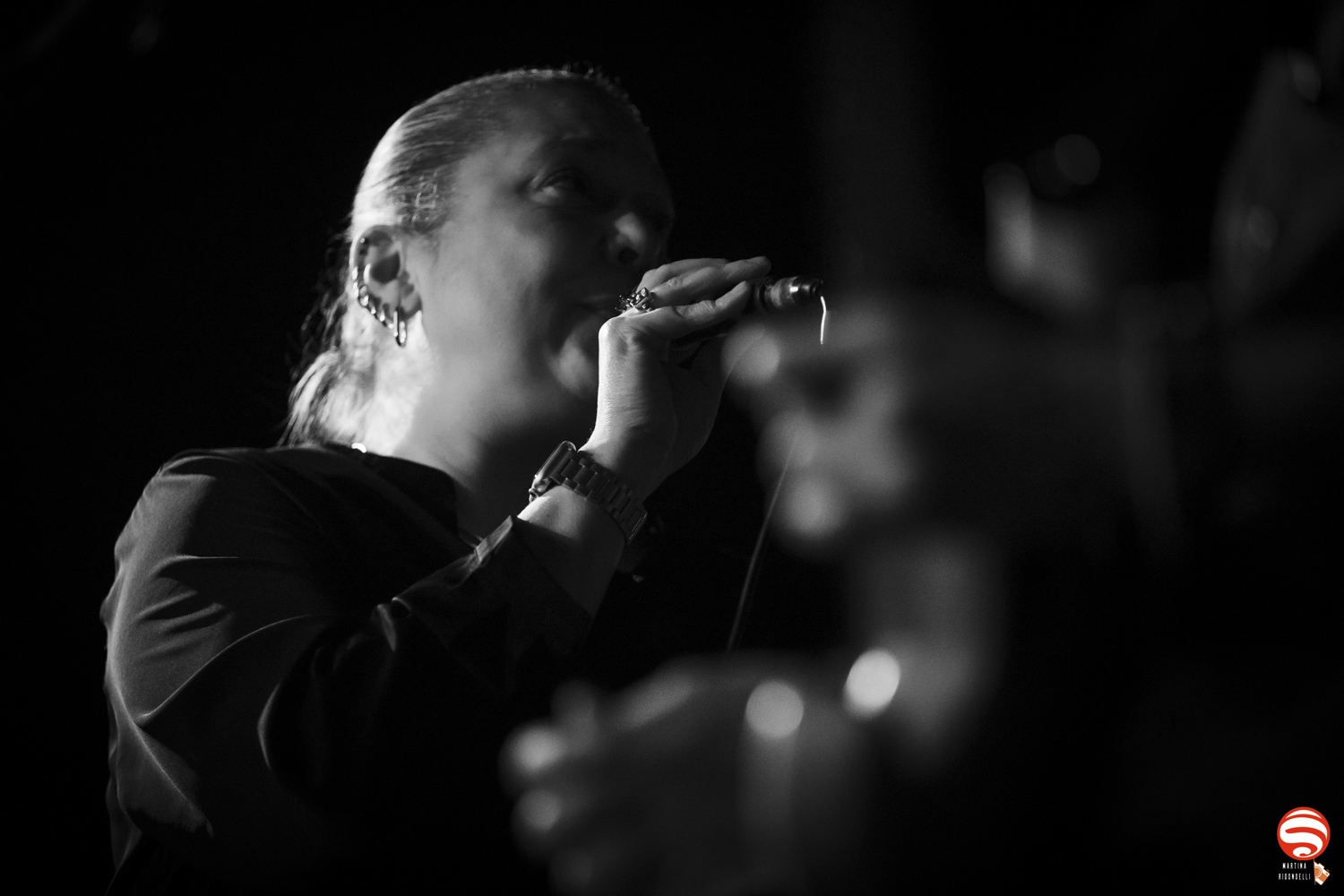 La band attacca con “Soul of a Man”, che apre le danze in modo solenne, quasi rituale, per poi scivolare senza pause nella più fisica “Down She Goes”. Quando arriva “Baron Samedi”, il Caracol si trasforma in una piccola bolgia. Lilith, in completo nero come un’ombra magnetica, domina la scena: interpreta, graffia, seduce e ringhia, dimostrando ancora una volta che la presenza scenica non ha bisogno di artifici.