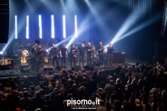 Il palco è il solito, quello dove 40 anni fa Fabrizio De André spengeva le sue sigarette. E anche i protagonisti sono gli stessi (peccato che manchi Mussida…), con gli anni è cambiato solo il nome del teatro e la struttura del teatro. La Premiata Forneria Marconi festeggia il quarantennale di quel tour storico con un concerto (quasi) tutto dedicato a Faber, con la riproposizione di gran parte dei brani che finirono nei 2 cd live usciti nel 1979 e nel 1980, più 4 canzoni tratte da “La buona novella” con arrangiamenti nuovi di zecca. E sono tutti lì, Franz Di Cioccio e Flavio Premoli, Lucio Fabbri e Patrick Djivas, con ospite Michele Ascolese che di De André è stato chitarrista e stretto collaboratore nei suoi ultimi anni di vita. Inutile parlare della bellezza delle canzoni, che chiunque ami un minimo De André conosce più che bene; c’è da sottolineare invece la grandiosità degli arrangiamenti e la classe di una band che dopo più di 50 anni ha ancora voglia di suonare e di incantare il suo pubblico, che ovunque è numerosissimo come ieri a Firenze. “Amico fragile”, per esempio, con una coda strumentale meravigliosa, è stata il picco della serata, così come “Giugno ’73” e una strepitosa versione di “Rimini” hanno strappato una standing ovation. E poi tutti in piedi a ballare con “Zirichiltaggia”, “Volta la carta” e “Il pescatore”. Prima di un bis magnifico che ha mescolato “Celebration” e “Impressioni di settembre” in un medley che grondava progressive, unica incursione nel catalogo PFM di una serata memorabile dedicata all’eterno amico Fabrizio. Grazie Premiata Forneria, ci vediamo per il 50° anniversario!
