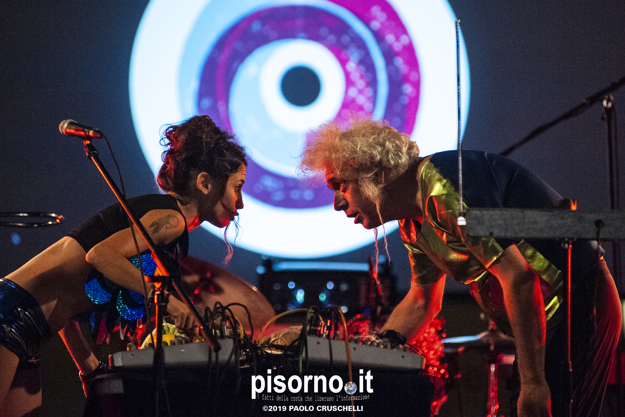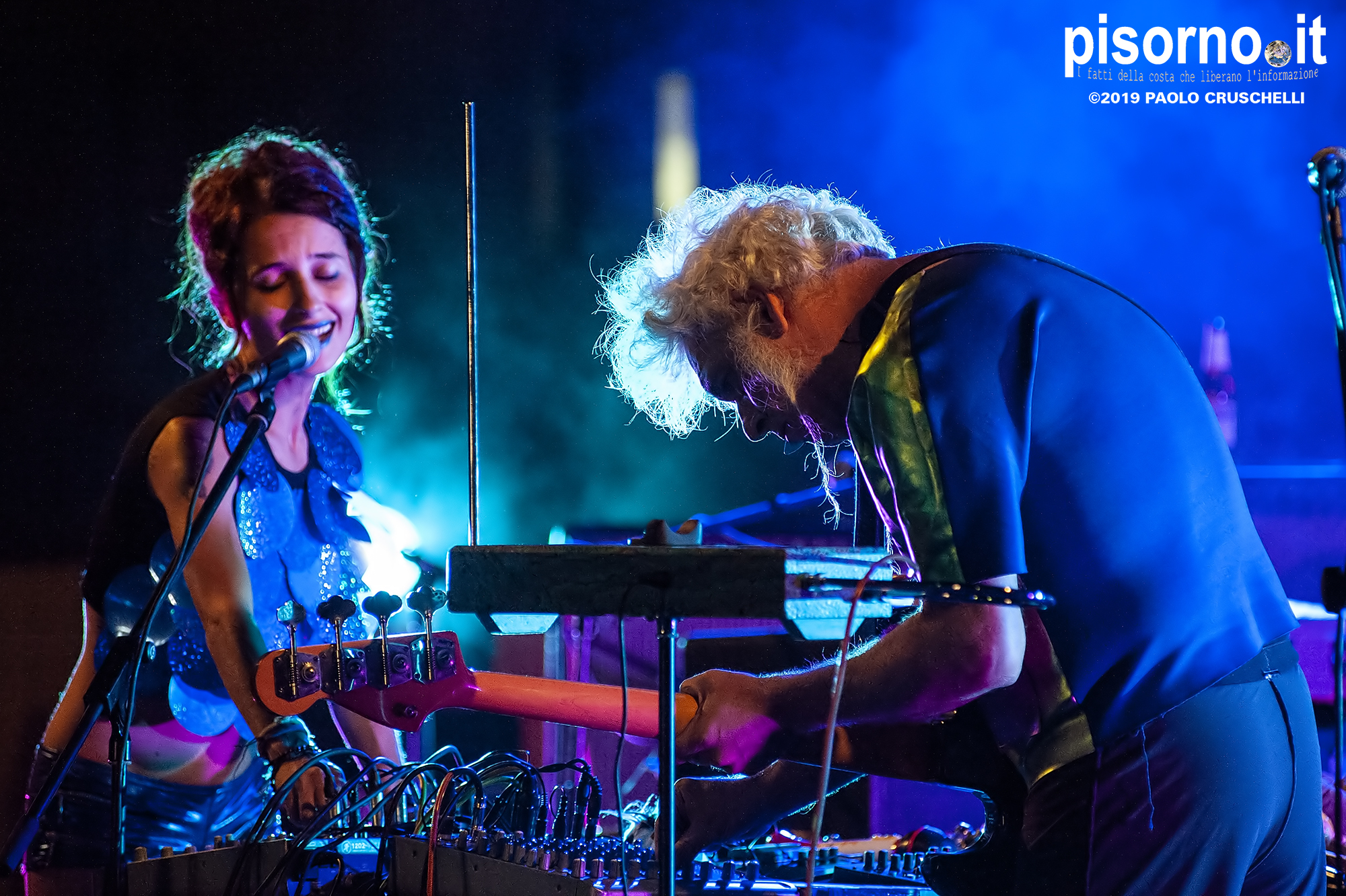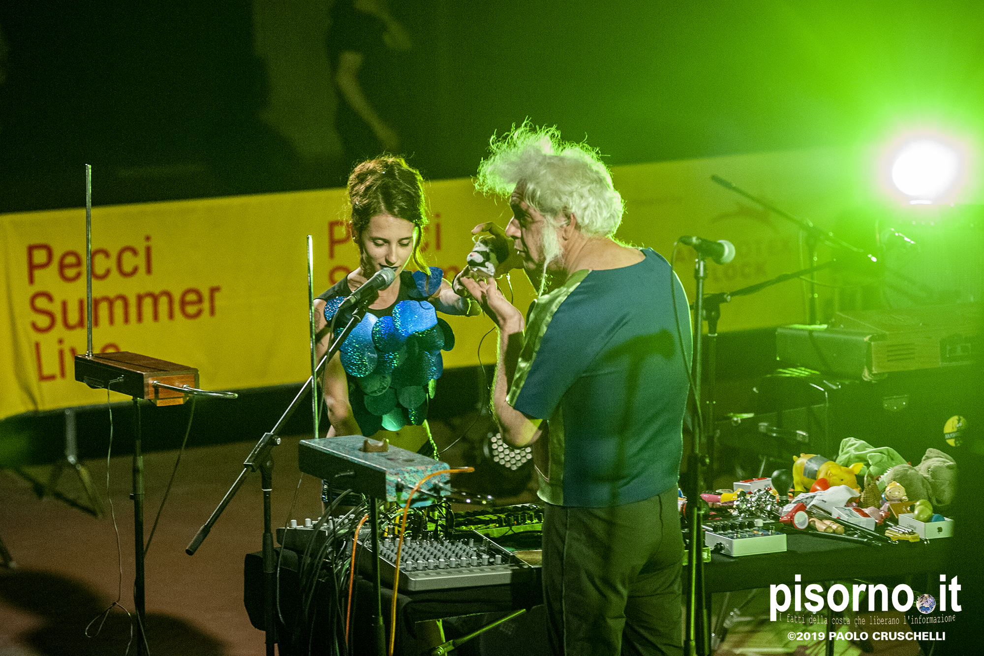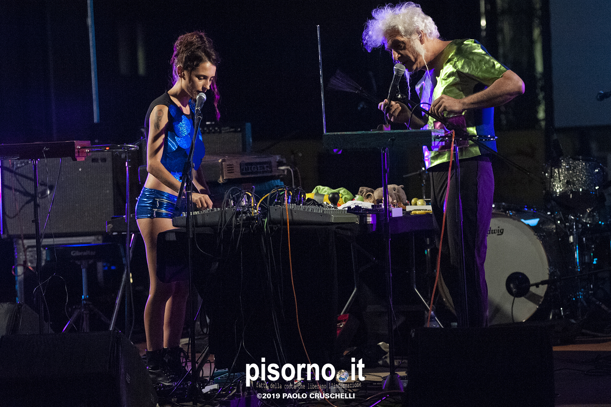 Dopo Caterina Palazzi, è la volta degli OoopopoiooO, duo visionario formato da Vincenzo Vasi e Valeria Sturba. Entrambi polistrumentisti, entrambi sperimentatori, entrambi creativi senza limiti, portano in scena uno spettacolo veramente interessante. Entrambi thereministi, portano in scena l’elettromagnetismo, accompagnato ai virtuosismi del violino di Valeria Sturba, arricchiti da sonorità elettroniche. Unendo a tutto ciò l’utilizzo della tastiera, dei vocoder per “giocare” con la voce, del basso elettrico suonato da Vincenzo Vasi e la sperimentazione sonora con l’utilizzo di giocattoli, i due musicisti hanno permesso agli spettatori di lasciarsi affascinare dalle sonorità particolari proposte, che sottendono un grande studio di ricerca che amalgama le caratteristiche di stili musicali molto diversi tra loro con grande sapienza, senza però rappresentare un ostacolo ostico a chi fosse semplicemente uno spettatore curioso. Canzoni sui topi, topi e dinosauri giocattolo protagonisti di esibizioni al theremin, simpatia al microfono, abbiamo assistito alla performance di due artisti che senza prendersi troppo sul serio fanno cose grandi.
