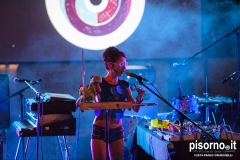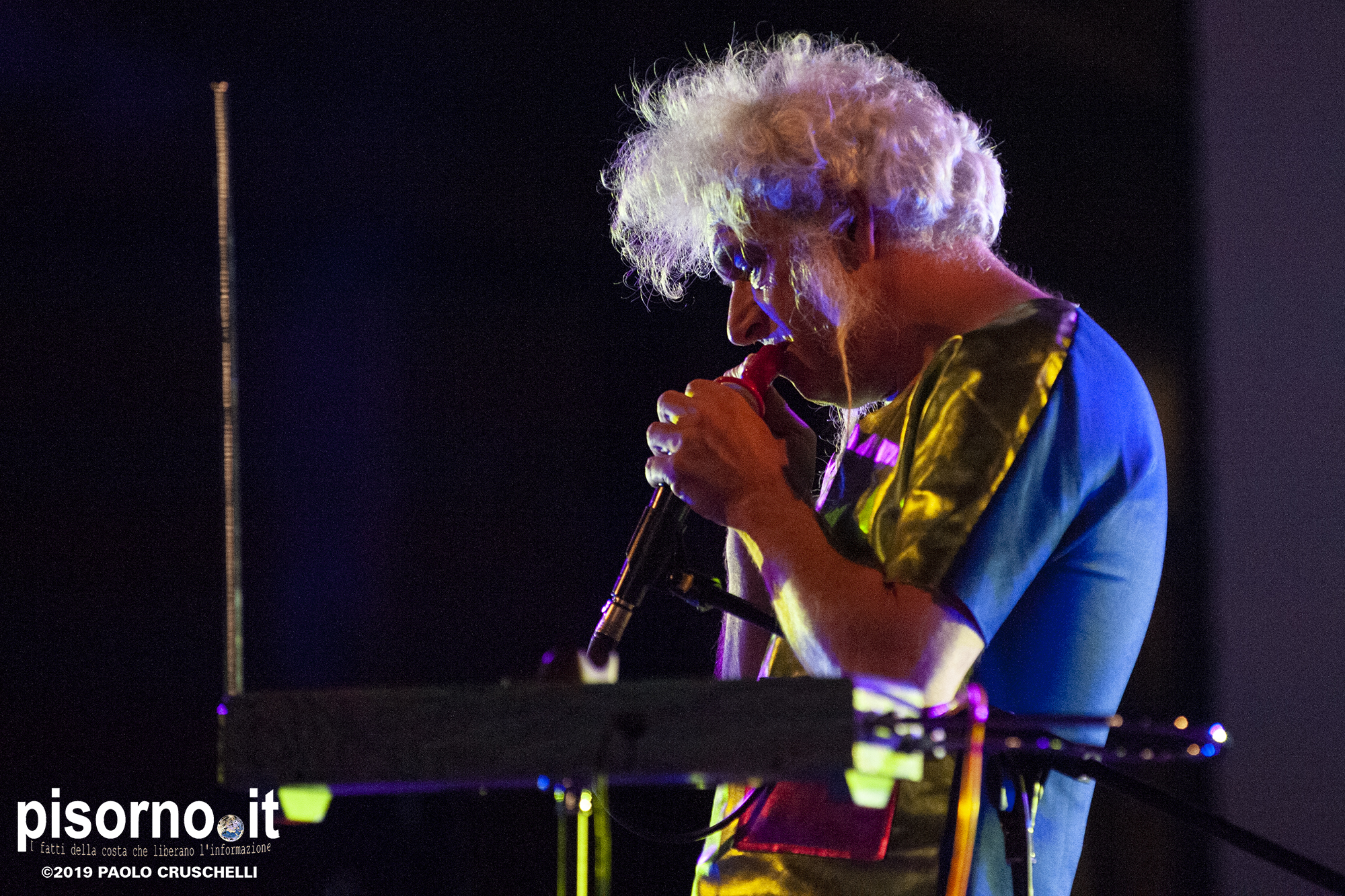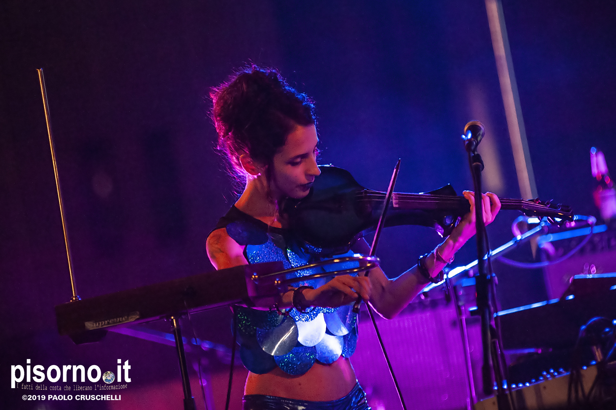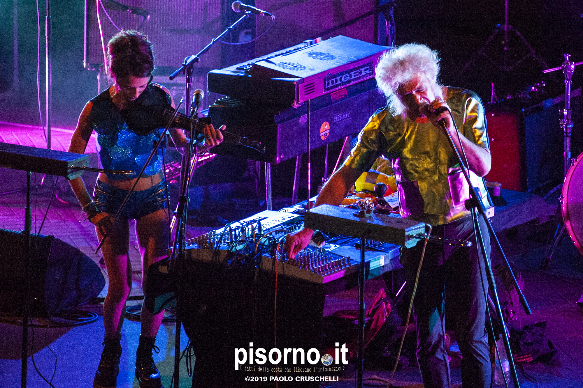 Dopo Caterina Palazzi, è la volta degli OoopopoiooO, duo visionario formato da Vincenzo Vasi e Valeria Sturba. Entrambi polistrumentisti, entrambi sperimentatori, entrambi creativi senza limiti, portano in scena uno spettacolo veramente interessante. Entrambi thereministi, portano in scena l’elettromagnetismo, accompagnato ai virtuosismi del violino di Valeria Sturba, arricchiti da sonorità elettroniche. Unendo a tutto ciò l’utilizzo della tastiera, dei vocoder per “giocare” con la voce, del basso elettrico suonato da Vincenzo Vasi e la sperimentazione sonora con l’utilizzo di giocattoli, i due musicisti hanno permesso agli spettatori di lasciarsi affascinare dalle sonorità particolari proposte, che sottendono un grande studio di ricerca che amalgama le caratteristiche di stili musicali molto diversi tra loro con grande sapienza, senza però rappresentare un ostacolo ostico a chi fosse semplicemente uno spettatore curioso. Canzoni sui topi, topi e dinosauri giocattolo protagonisti di esibizioni al theremin, simpatia al microfono, abbiamo assistito alla performance di due artisti che senza prendersi troppo sul serio fanno cose grandi.