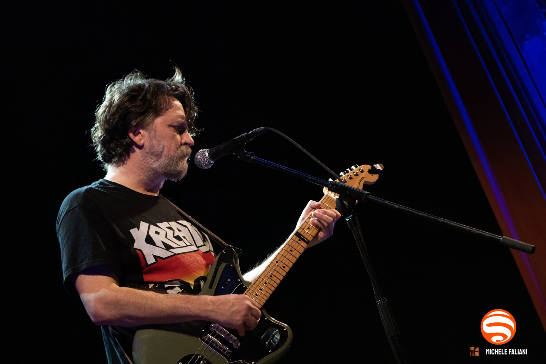 È partita la stagione indoor 2025/2026 dell’Associazione La Chute nell’abituale sede del Circolo Il Progresso, con un’anteprima che gli appassionati non si sono lasciati sfuggire: Six Organs Of Admittance, con il solo Ben Chasny sul palco che però è bastato a regalare alla Redrum un concerto intenso e sorprendente. Maglietta dei Kreator – band thrash metal tedesca -, barba lunga e parecchi chili in meno rispetto a quando lo incontrammo una dozzina di anni fa nella vecchia sede del Caracol, scaletta scritta su un fogliaccio sgualcito e logoro, Chasny ha acceso il suo ampli Fender Twin Reverb alle 22 in punto.
