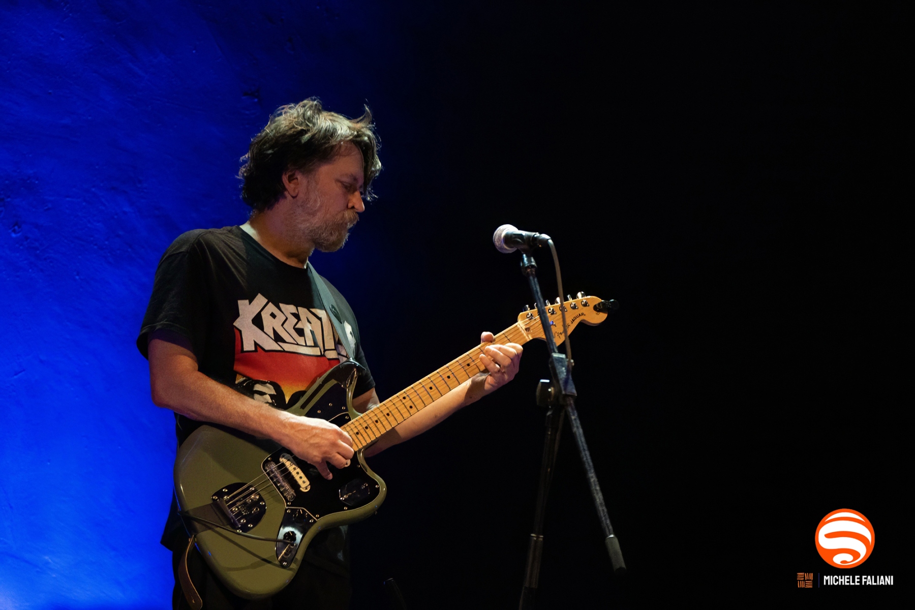È partita la stagione indoor 2025/2026 dell’Associazione La Chute nell’abituale sede del Circolo Il Progresso, con un’anteprima che gli appassionati non si sono lasciati sfuggire: Six Organs Of Admittance, con il solo Ben Chasny sul palco che però è bastato a regalare alla Redrum un concerto intenso e sorprendente. Maglietta dei Kreator – band thrash metal tedesca -, barba lunga e parecchi chili in meno rispetto a quando lo incontrammo una dozzina di anni fa nella vecchia sede del Caracol, scaletta scritta su un fogliaccio sgualcito e logoro, Chasny ha acceso il suo ampli Fender Twin Reverb alle 22 in punto.