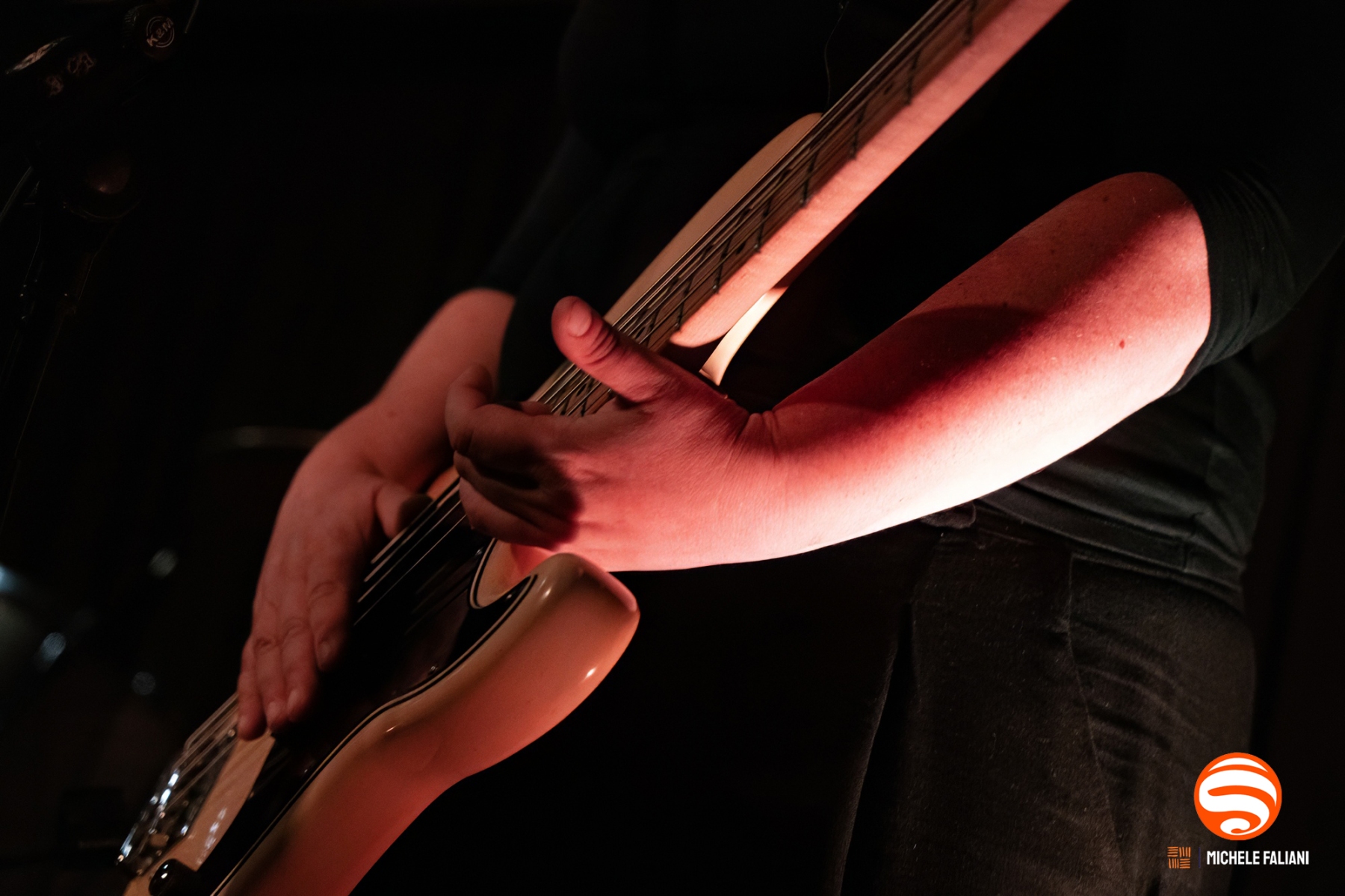 Sul palco, i fratelli non deludono. Matthew, con la sua camicia à la Paul Weller del periodo Jam, suona la chitarra con rabbia, si scontra con i muri della minuscola scena e maltratta un microfono troppo debole per la sua furia. È il classico “lad” inglese, nervi e riff. Issey, con abito e stivali rossi da pin-up e uno sguardo magnetico, brandisce il suo basso Rickenbacker con una sicurezza da veterana. Una coppia che non ha solo il look, ma l’attitudine rock’n’roll in formato XXL.