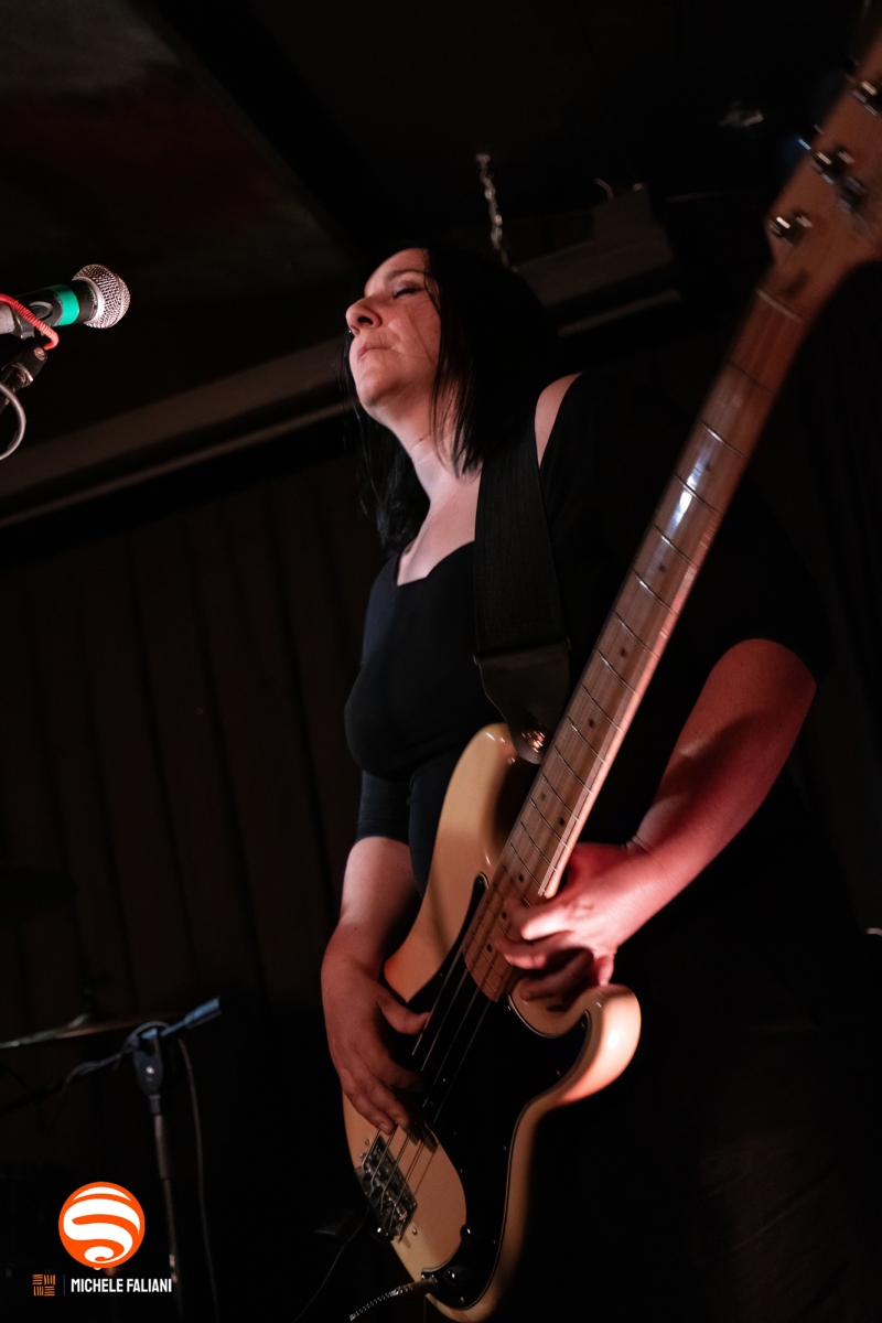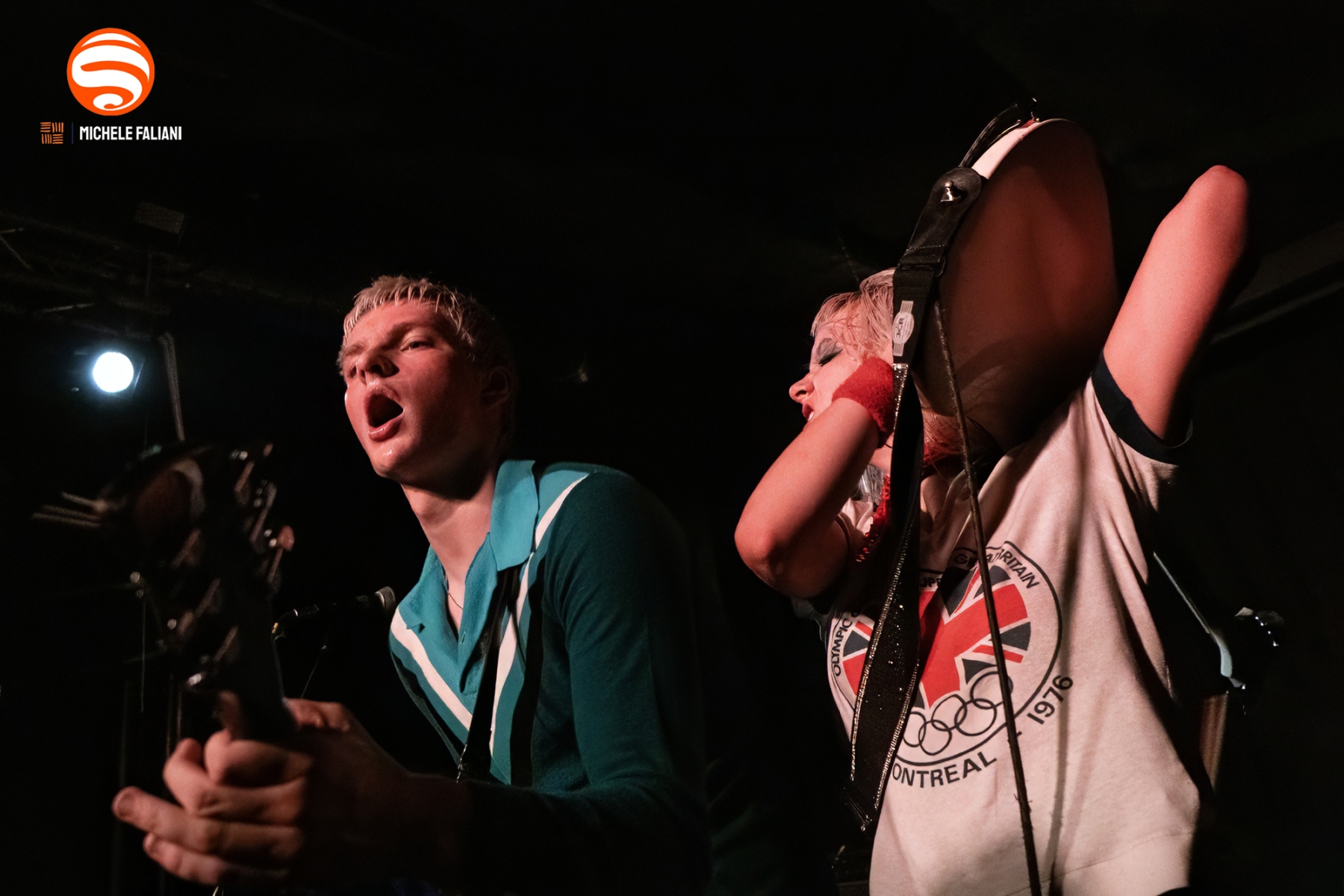 Sul palco, i fratelli non deludono. Matthew, con la sua camicia à la Paul Weller del periodo Jam, suona la chitarra con rabbia, si scontra con i muri della minuscola scena e maltratta un microfono troppo debole per la sua furia. È il classico “lad” inglese, nervi e riff. Issey, con abito e stivali rossi da pin-up e uno sguardo magnetico, brandisce il suo basso Rickenbacker con una sicurezza da veterana. Una coppia che non ha solo il look, ma l’attitudine rock’n’roll in formato XXL.